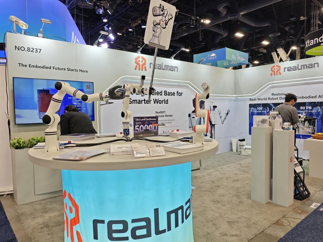 1月6日至9日,国际消费电子展(CES 2026)在美国拉斯维加斯举行。连续三年参展的睿尔曼在本届展会上,携全栈自研一体化关节模组、超轻量仿人机械臂及远程作业网络(GLN),展示其在具身智能领域从硬件、数据到远程作业网络的全链路布局。