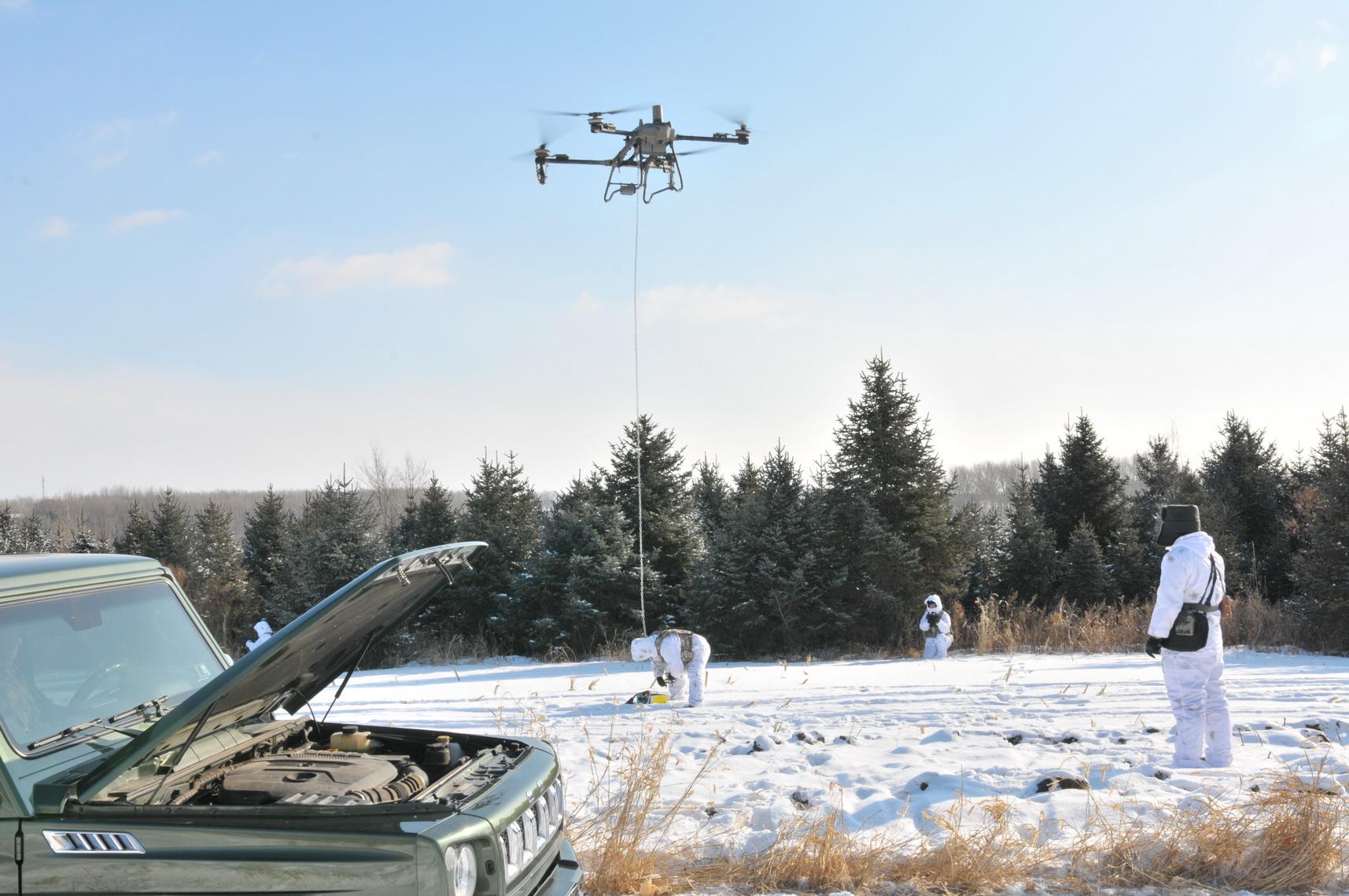仗怎么打、兵就怎么练,人武部官兵以战领训、以训促战,不断提升复杂环境下的任务执行能力。演训中,指挥员接到上级关于“过境部队遭遇风雪造成车辆侧翻,迅速救援”的指令,于是即时由“练”改为“战”。根据坐标定位,操作手立即操控无人机升空飞赴目标地域进行实时侦察。