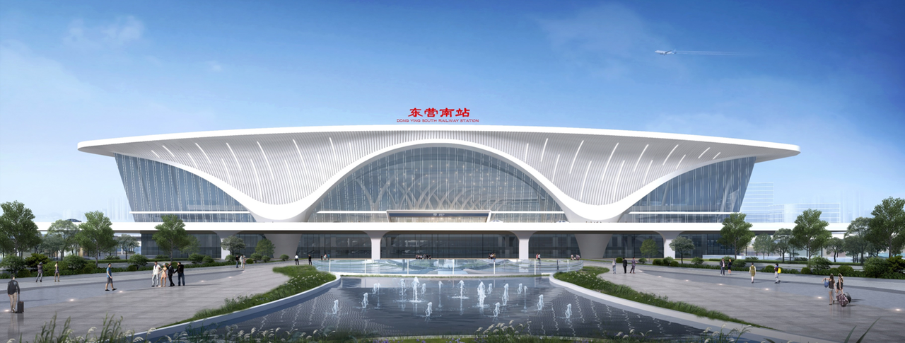 东营南站项目位于山东省东营市,是津潍高铁正线的重要车站,最高可聚集2200人。据了解,该站设计以“东方白鹳、起舞东营”为理念,建筑形态取自白鹳展翅飞翔的意象,通过主体向外延伸的曲线造型,营造出虚实交织、灵动飘逸的层次美感。