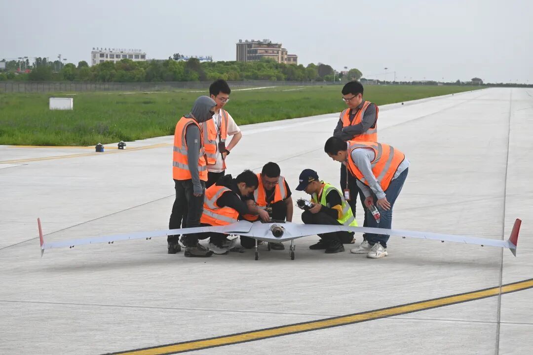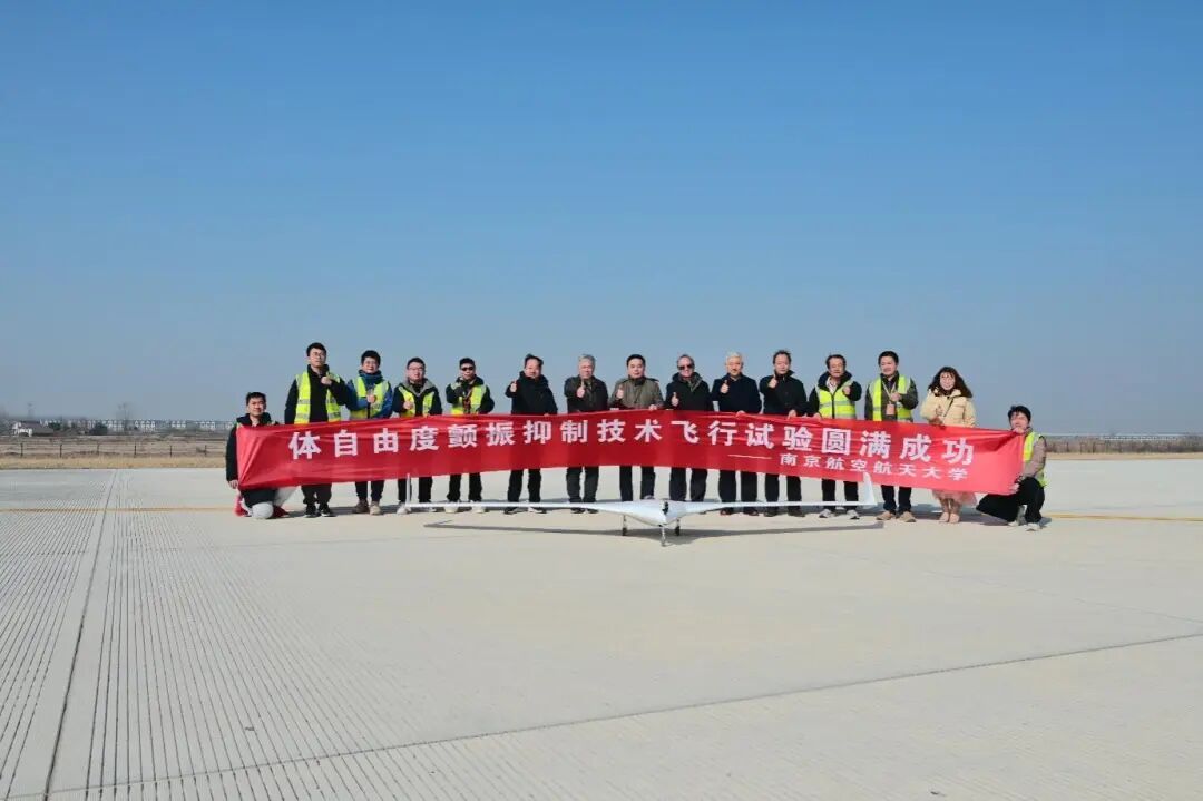 借由上述技术的攻关,团队自主研制出展弦比超过10的柔性飞翼布局无人机验证机,在飞行试验中,验证机的刚-弹耦合颤振临界速度可提升62.5%。