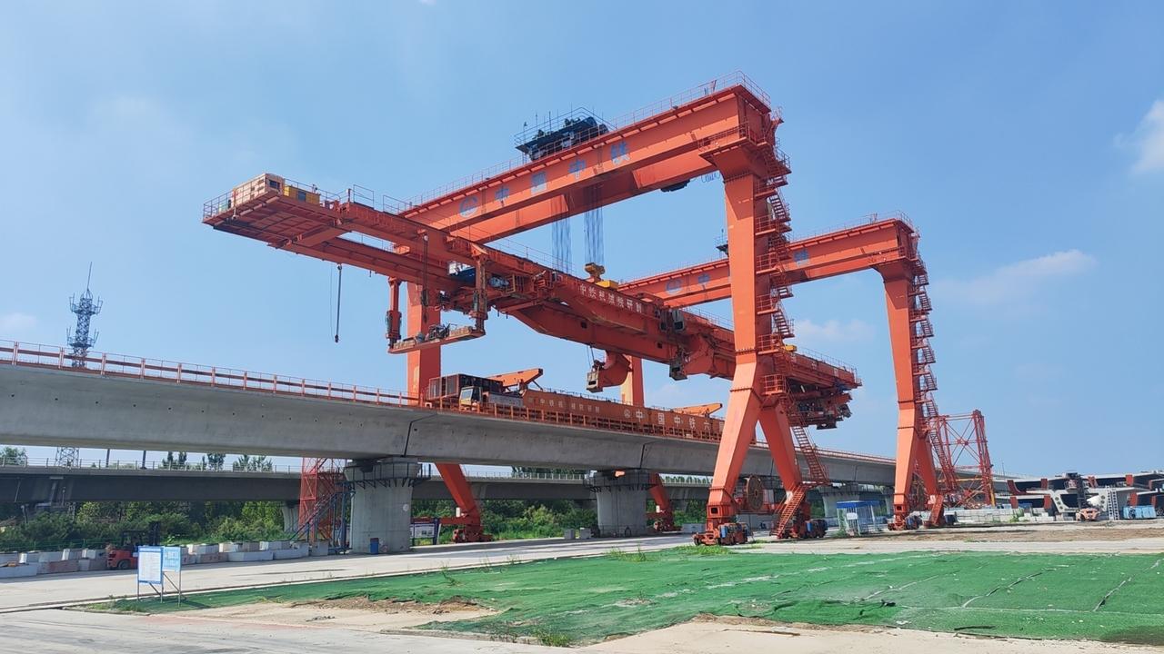此前,丰桥公司已高质量完成全线双线箱梁架设任务,最后一榀箱梁精准落位后,团队即刻聚焦大型设备安全撤场工作,该环节风险高、协同难度大,其中架桥机作为铁路建设的“擎天巨臂”,其吊卸作业更是对施工团队技术与管理水平的严峻考验。