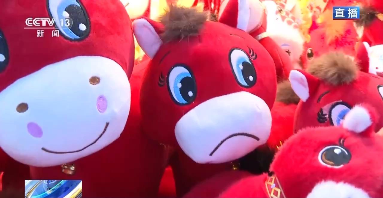 总台记者 夏周:我在义乌小商品市场毛绒玩具专区的一位商户的店铺里观察了一下,其中一款叫“马上有钱”的毛绒玩具是去年10月中旬上架的,有5个不同尺寸。当初为了定版,前前后后花了半个月,因为当时老板娘觉得马嘴用黄色更醒目,而设计团队觉得白色更时尚,最终老板娘听取了他们的建议,把马嘴定版为白色。当初老板娘对这款小马的市场前景并没有太大把握,上市之后每天大概能卖400个左右,不算爆款。但今年一月份,因为生产线上工人的一个小小失误让它快速出圈了。