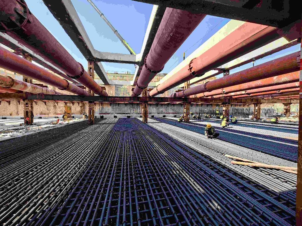 面对毗邻机场的敏感环境、复杂地质及城区施工限制,项目团队将科技创新与精细管理深度融合,全程用BIM技术模拟优化施工,引入智能监测系统实时感知支护结构变形与周边环境稳定并预警,动态优化支护方案、科学开展分区域流水施工,成功化解多重风险,保障基坑安全平稳封顶。