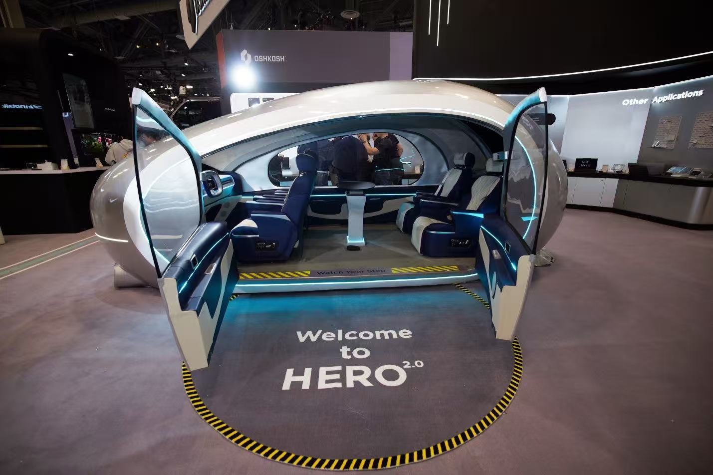 其中,通过搭载一系列智能座舱技术,HERO 2.0实现视觉、听觉体验的革新,比如AI技术助力进行智能语音和手势控制,复杂指令识别率达98%;通过舱内中控大屏,可控制车内调光天窗、外卖点餐、空调调节、远程查看家中的爬宠缸状态等,实现“车-家互联”“车-商互联”;全球首款智能、独立车载功放产品,搭载了实时AI音质修复技术,实现“发烧级”听觉体验;数字广播系统在没有4G、5G信号的情况下,实现高品质音频、图片传输,在地震、暴雨等突发情况下还具备“应急通信”功能。舱内还配备了智能桌,用户可在桌面上进行办公PPT播放演示,控制座椅按摩,无缝衔接娱乐、休闲与办公等全场景,彰显了科技服务生活的设计理念,为智能出行奠定技术基础。