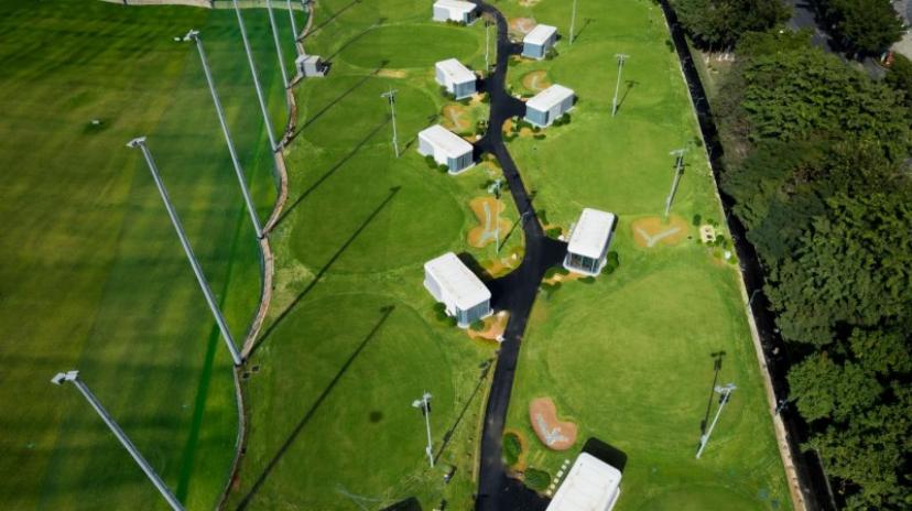 值得一提的是,城市高尔夫模式摒弃了简单的室内模拟器升级思路,打造了“长杆在模拟器上打,短杆在真草果岭切推”的沉浸式体验环境——每个标准球洞均由自主研发的高尔夫模拟器与包含真实沙坑、水障碍及真草果岭的短打区组成。当球员击球进入果岭周边区域后,系统可智能切换至真实短打区,还原室外球场的乐趣与挑战性。