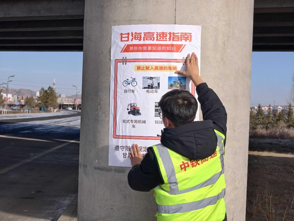 在甘海高速出入口,甘海高速运营管理所工作人员耐心向过往群众讲解车辆禁行规定,提前梳理禁入车辆类型、对应法律法规条款及典型事故案例,将专业条文转化为通俗语言,精心制作警示性强的宣传单与海报,构建“多点覆盖、精准触达、全民参与”的宣传格局。