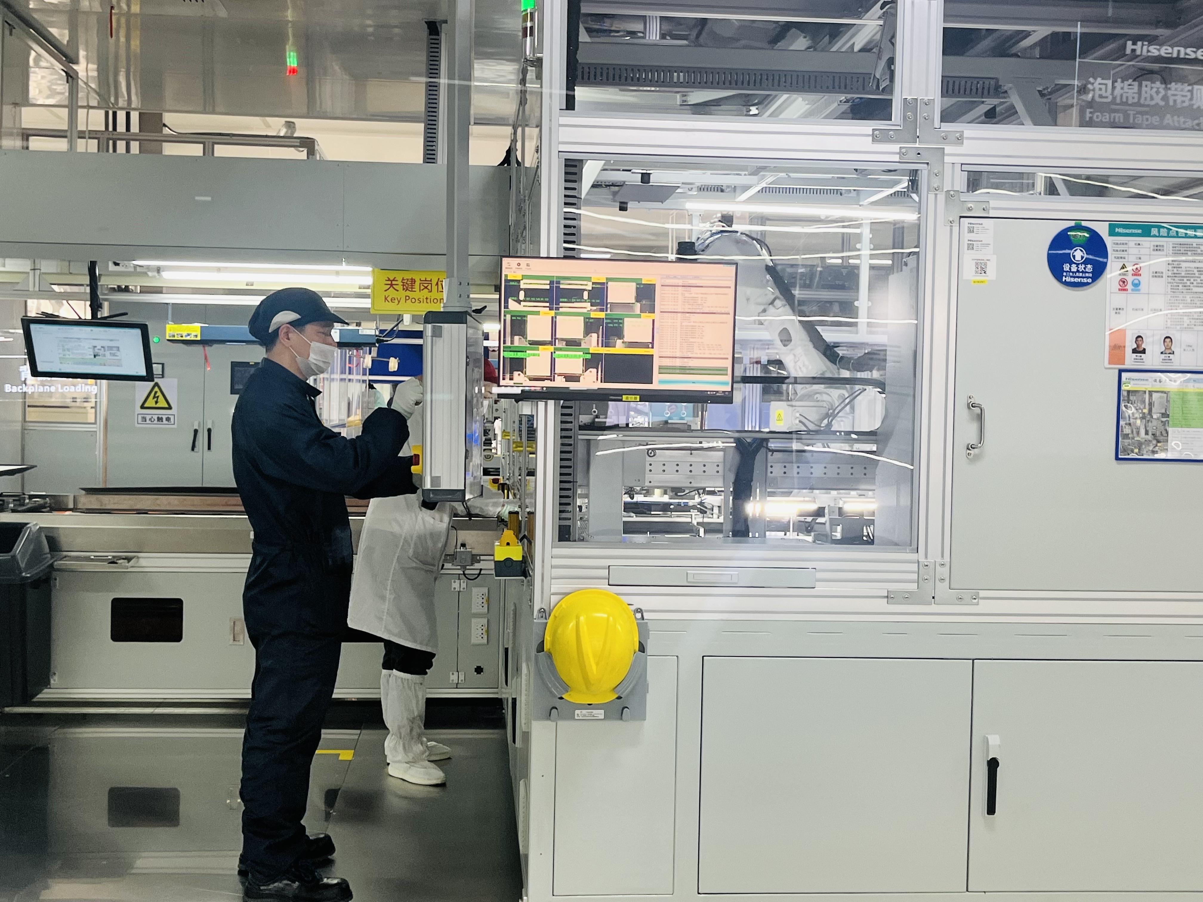 在质量提升方面,海信行业首创的AI智能检测平台,基于超过26万份高质量样本训练的深度学习模型,通过“拍检同步”技术,构建了一个从实时发现、到即时反馈、再到快速纠正的完整质量闭环,检测效率提升70.7%。