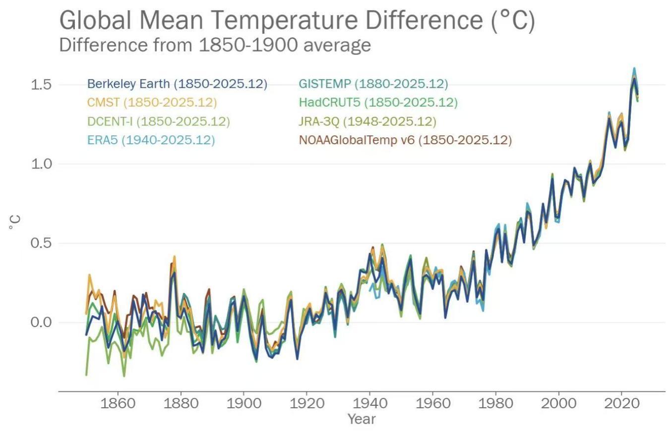 1月14日,世界气象组织(WMO)正式发布2025年全球温度变化研究报告,报告融合了中山大学等8个团队研发的核心数据集,形成权威信息源,确认2025年成为有记录以来最暖年份之一。中国团队自主研发的全球温度基准数据继2021年被政府间气候变化委员会(IPCC)科学评估报告采纳后,此次再次应用于该领域国际权威报告,彰显我国在该领域的科研实力与国际话语权持续提升。