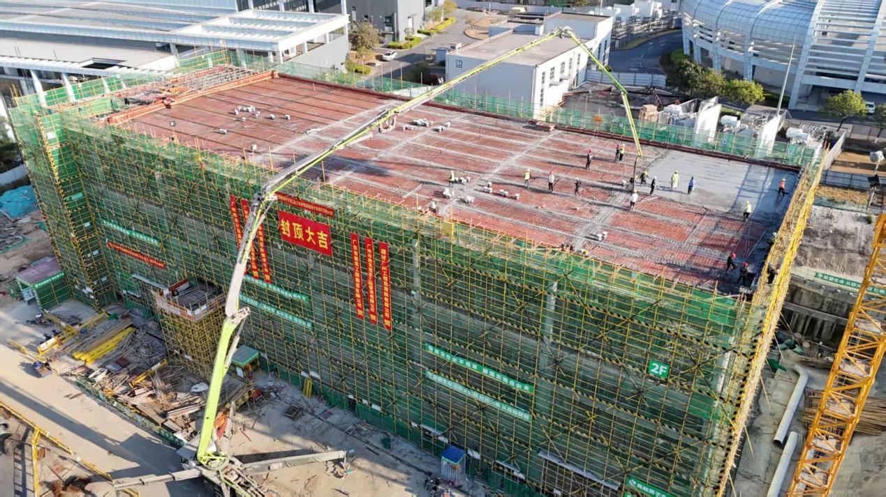 1月15日凌晨4点,高能质子实验厅屋面楼板完成浇筑。至此,中国散裂中子源二期工程所有单体建筑全部实现封顶。