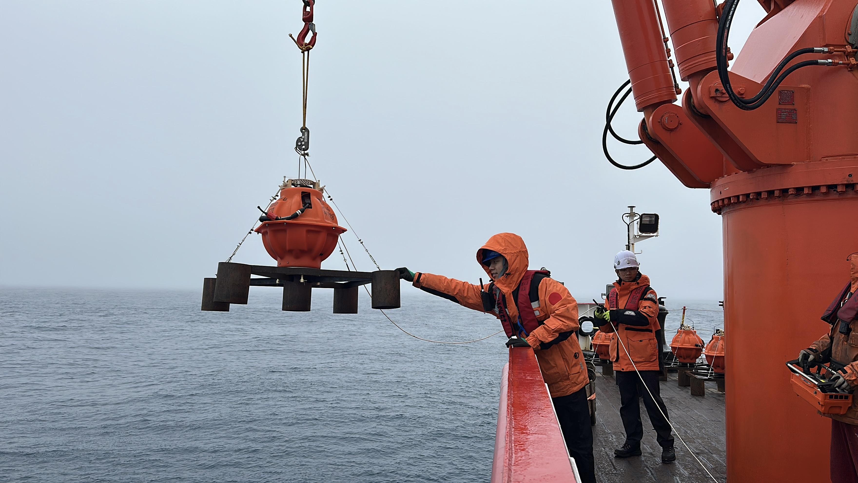 “咚”的一声,随着工作人员操作脱钩器,释放海底地震仪平稳入水,中国第42次南极考察“雪龙2”号大洋考察作业正式拉开帷幕。