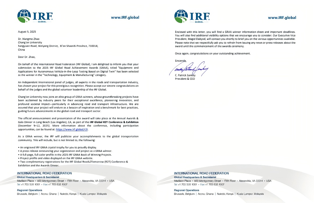 据介绍,学校在科研奖励方面取得重要突破。该校校长赵祥模牵头完成的“基于数字孪生的自动驾驶整车在环测试装备与应用”项目,荣获2025年全球道路成就奖。该奖项由国际道路联合会主办,是全球道路领域最具权威性的奖项之一。该校建筑学院雷振东教授团队的“基于多元文化的西部地域绿色建筑模式体系、关键技术与应用”项目获得华夏建设科学技术奖特等奖。