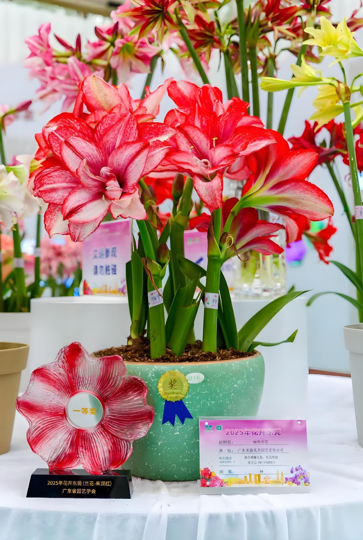 朱顶红,素有“南国牡丹”与“球根皇后”的美誉,是东莞重点培育的特色花卉品种。它花型丰富、色彩艳丽,兼具牡丹的富丽与百合的清雅,“注定红”的吉祥谐音更让其在年宵花市场备受青睐。历经二十年科技育种,通过太空育种、基因编辑等前沿技术,东莞已建立涵盖130个品种的朱顶红种质资源库,实现国产化规模生产,每年向市场稳定输送商品球50万颗。