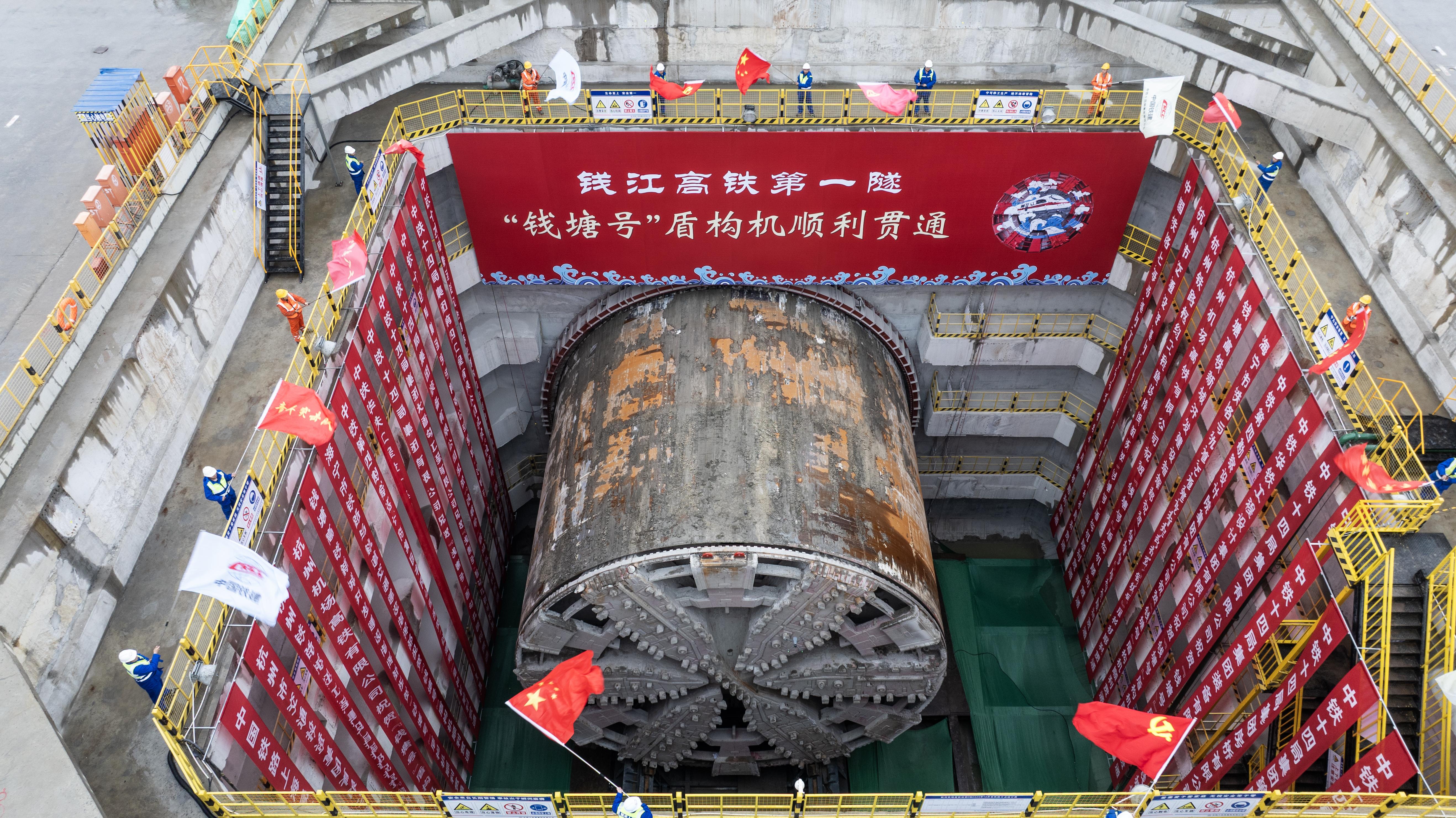 日前,由中铁第四勘察设计院设计、中铁十四局承建的铁路杭州萧山机场站枢纽及接线工程(以下简称“杭州机场高铁”)控制性工程——钱塘江高铁盾构隧道成功贯通,为杭州机场高铁全线贯通打下坚实基础。
