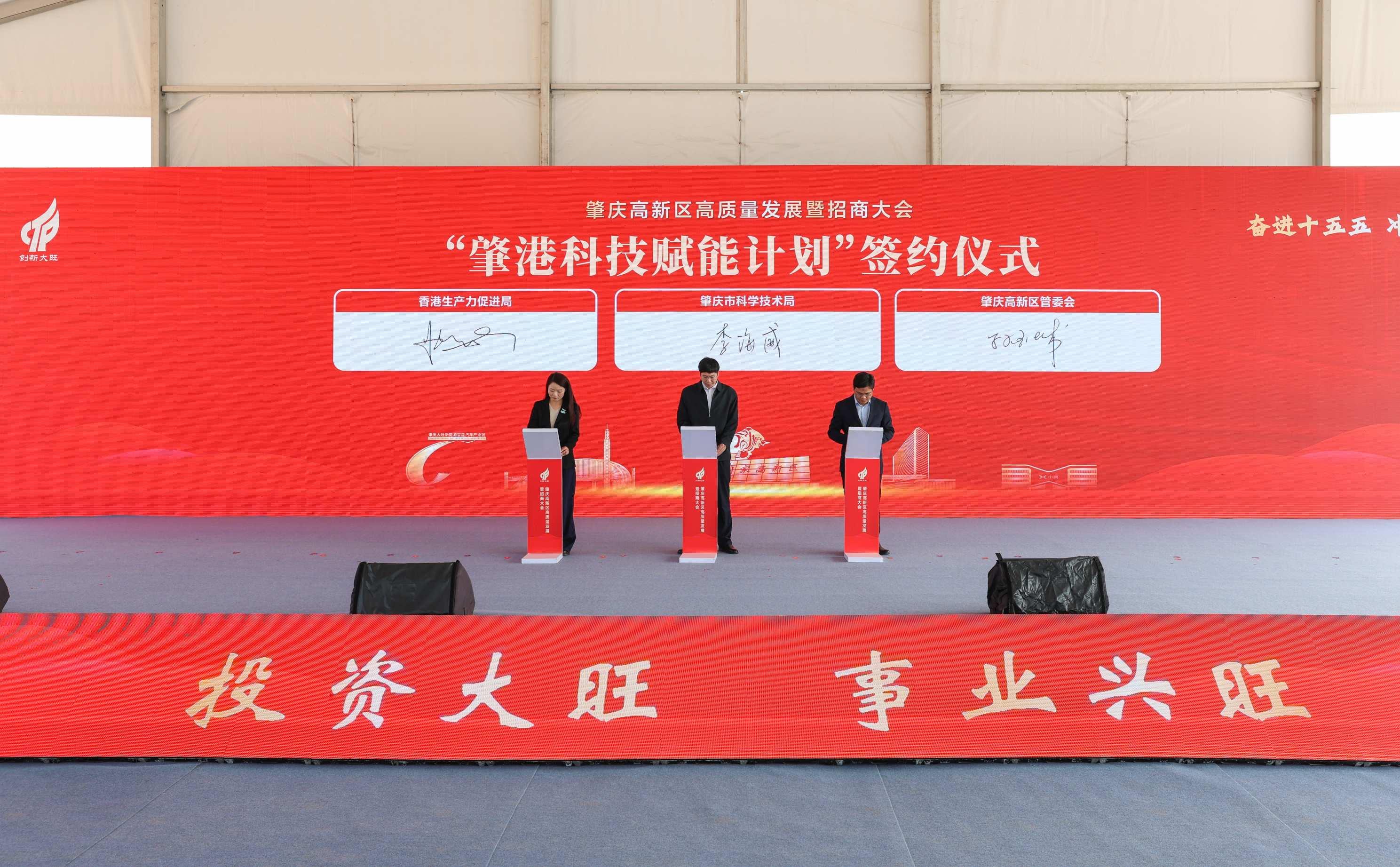 会上,“肇港科技赋能计划”正式签约,标志着肇庆高新区与香港在“研发+转化”新范式的合作迈入新阶段。该计划将充分发挥肇庆与香港两地的互补优势,聚焦产业创新与动能培育,积极探索产业创新与科技融合发展的新路径,双方将以肇庆高新区为试点,探索“香港研发+肇庆转化”“香港服务+肇庆智造”新路径,导入香港科创资源与国际化经验,推动制造业高端化、智能化、绿色化升级,以开放合作激发产业升级新动能。