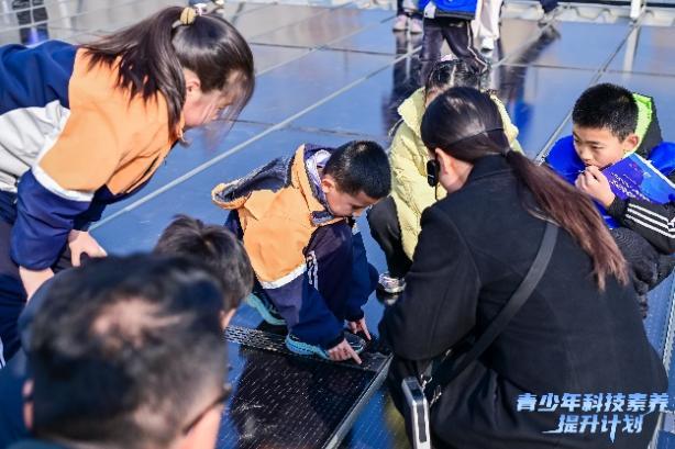 2026年1月17日,由中国下一代教育基金会与中国平安共同主办的青少年科技素养提升计划“科技燃梦”科技型企业开放日活动西安专场,带领来自陕北、陕南、关中三地的城乡师生走进西安科技馆、隆基绿能科技股份有限公司。通过沉浸式观摩、硬核实验探究、特色互动问答等多种形式,师生们感受科技的趣味,揭开光伏技术的神秘面纱,在“看见科技”“动手验证”“主动发问”的进阶中,深化对科技推动绿色可持续发展的认知,为“双碳”目标下的青少年科技素养培育写下生动注脚。