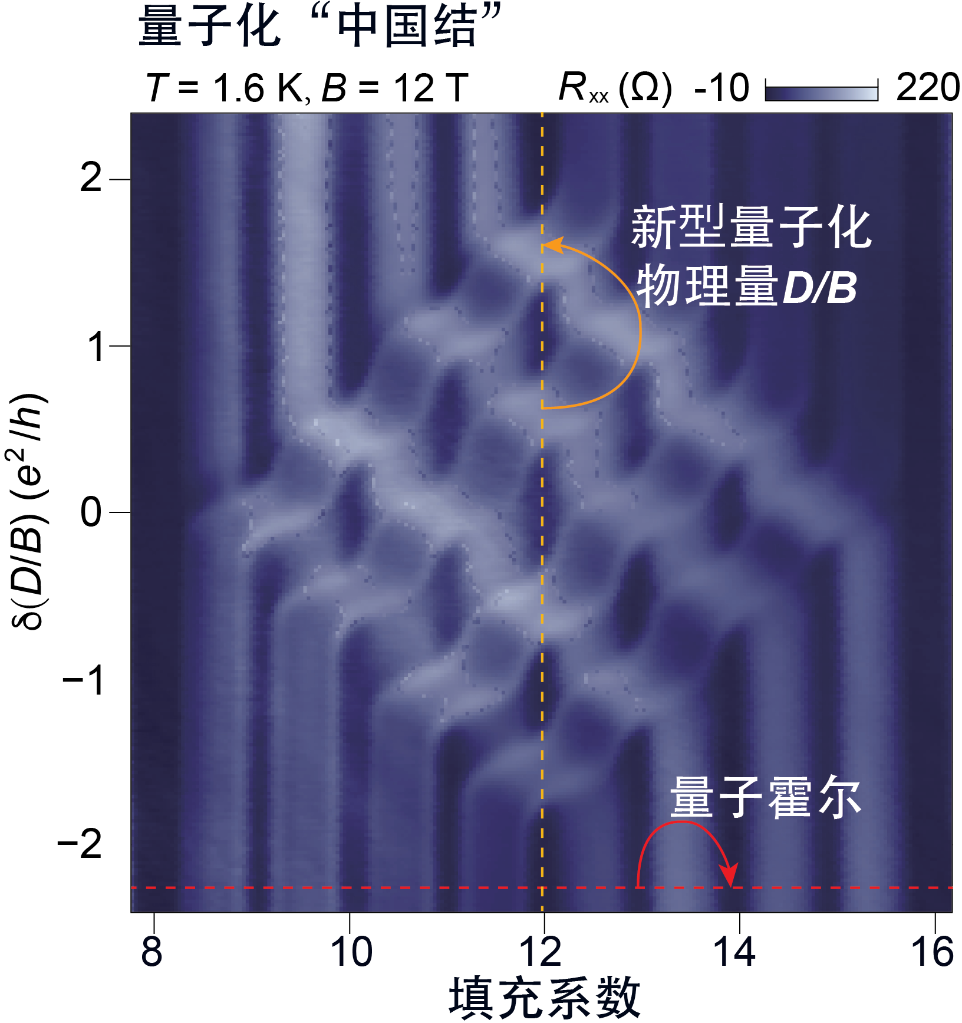 团队中的武汉大学科研人员进一步揭示了背后的物理机制:“中国结”的形成源于电子相之间的竞争与切换。实验表明,这种量子化特征具有极高的稳定性,在3特斯拉至30特斯拉的宽磁场范围内均能保持清晰的结构。