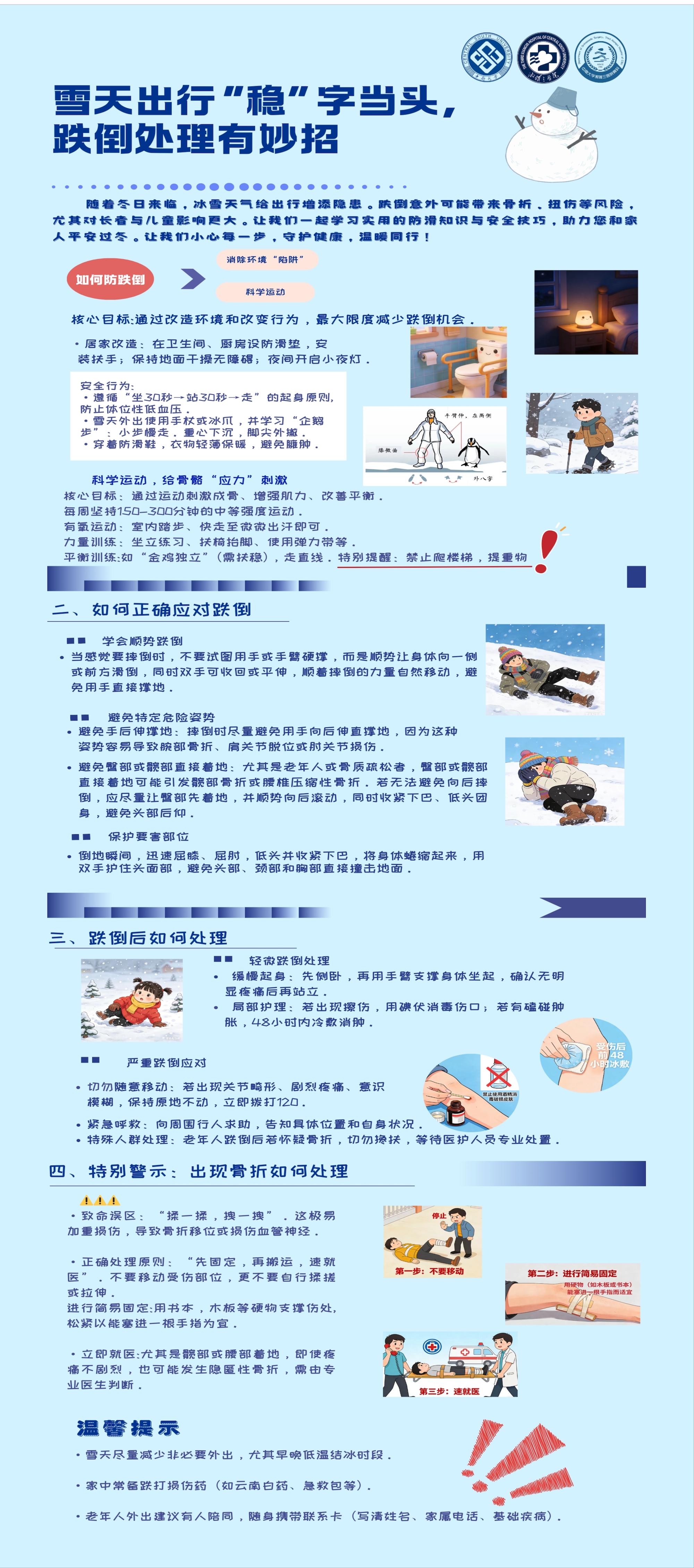 强雨雪冰冻天气在中东部地区并不常见,人们的防跌倒应对经验也并不丰富。雪天如何“稳当”出行?1月20日,中南大学湘雅三医院骨科专家给出了实用的防滑妙招。