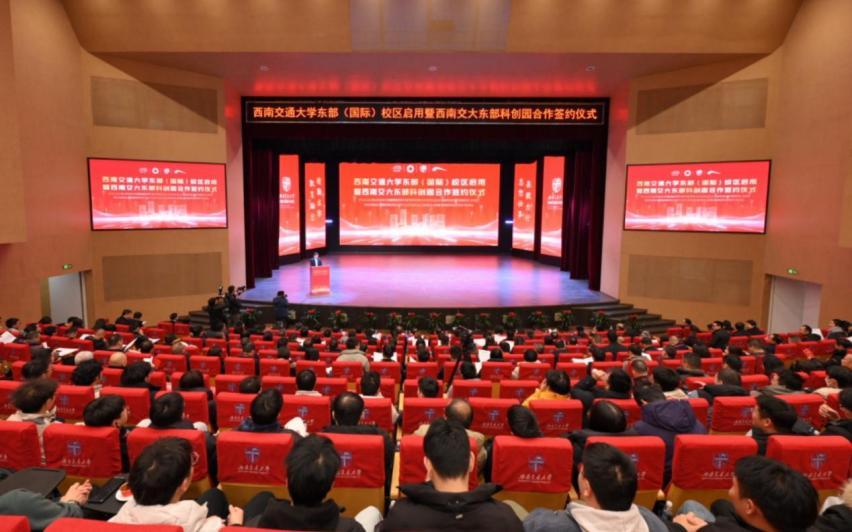 1月21日,西南交通大学东部(国际)校区启用暨西南交大东部科创园合作签约仪式在东部(国际)校区学生会堂举行。