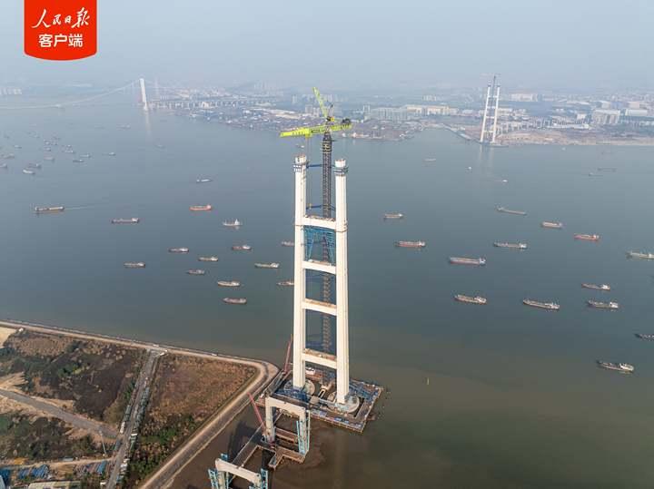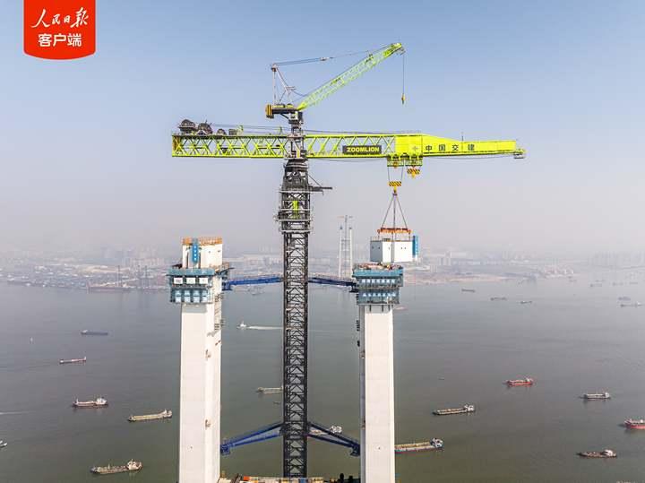 1月22日,随着T55节段完成吊装,世界最大跨径双层悬索桥狮子洋大桥主塔高度突破300米,成为珠江口第一高塔,实现项目建设“开门红”。