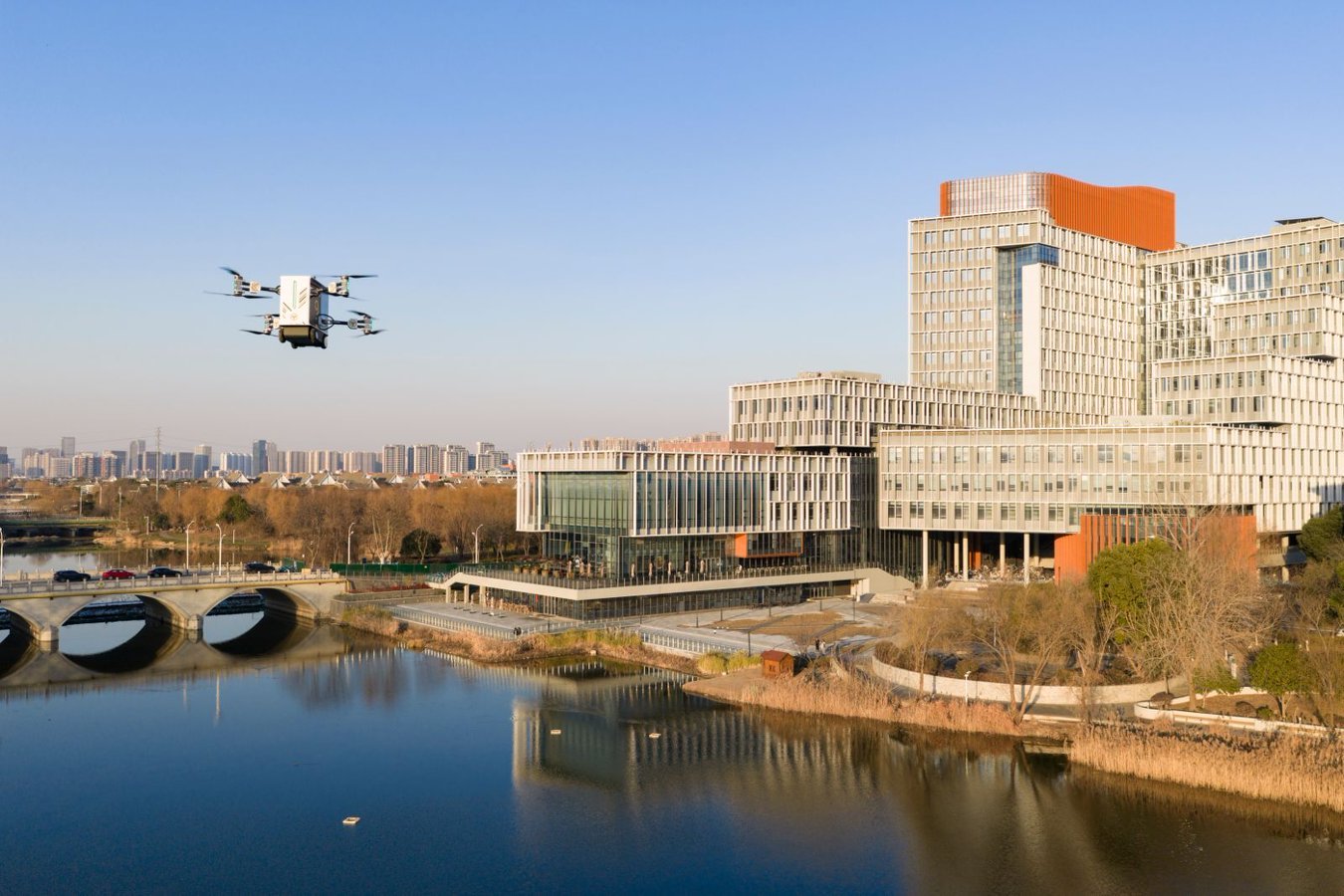 “嗡嗡嗡”……1月23日下午,随着空中传来一阵螺旋桨搅动空气的声音,一辆飞行汽车穿过东南大学九龙湖校区的粼粼湖面,稳稳降落在湖畔一栋楼的户外平台。