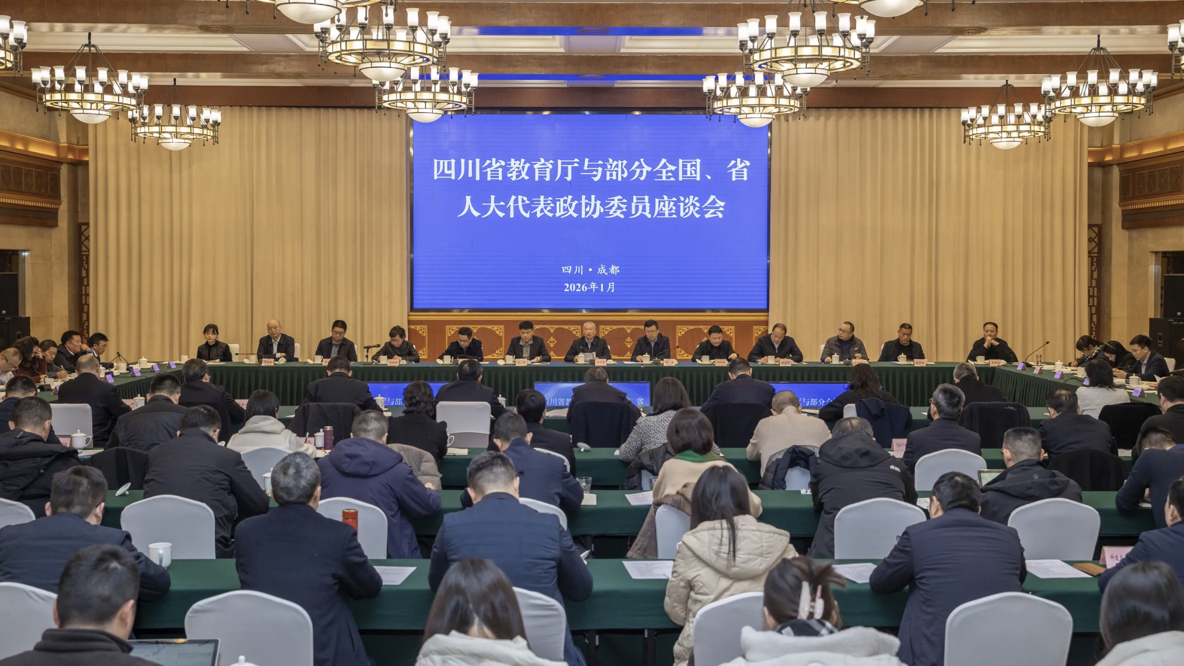 1月23日,四川省教育厅召开2026年代表委员座谈会,邀请部分在川全国和省人大代表、政协委员座谈交流。四川省委教育工委、教育厅班子成员,厅级干部和机关处室、直属事业单位主要负责同志参加。