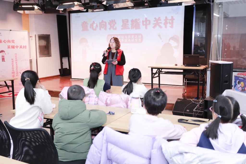 首期“童心向党·星耀中关村——行走在科技与历史之间的双语故事绘本研学营”吸引40余名小学员参与。五天时间里,孩子们走进北京卫星制造厂科技园、大钟寺古钟博物馆、清华园火车站及中关村村史馆,在实地探访中触摸家乡的科技成就与历史底蕴。通过小组协作,学员们共同创作完成五册中英双语绘本故事,结营仪式上的故事讲述与英文介绍赢得阵阵掌声。