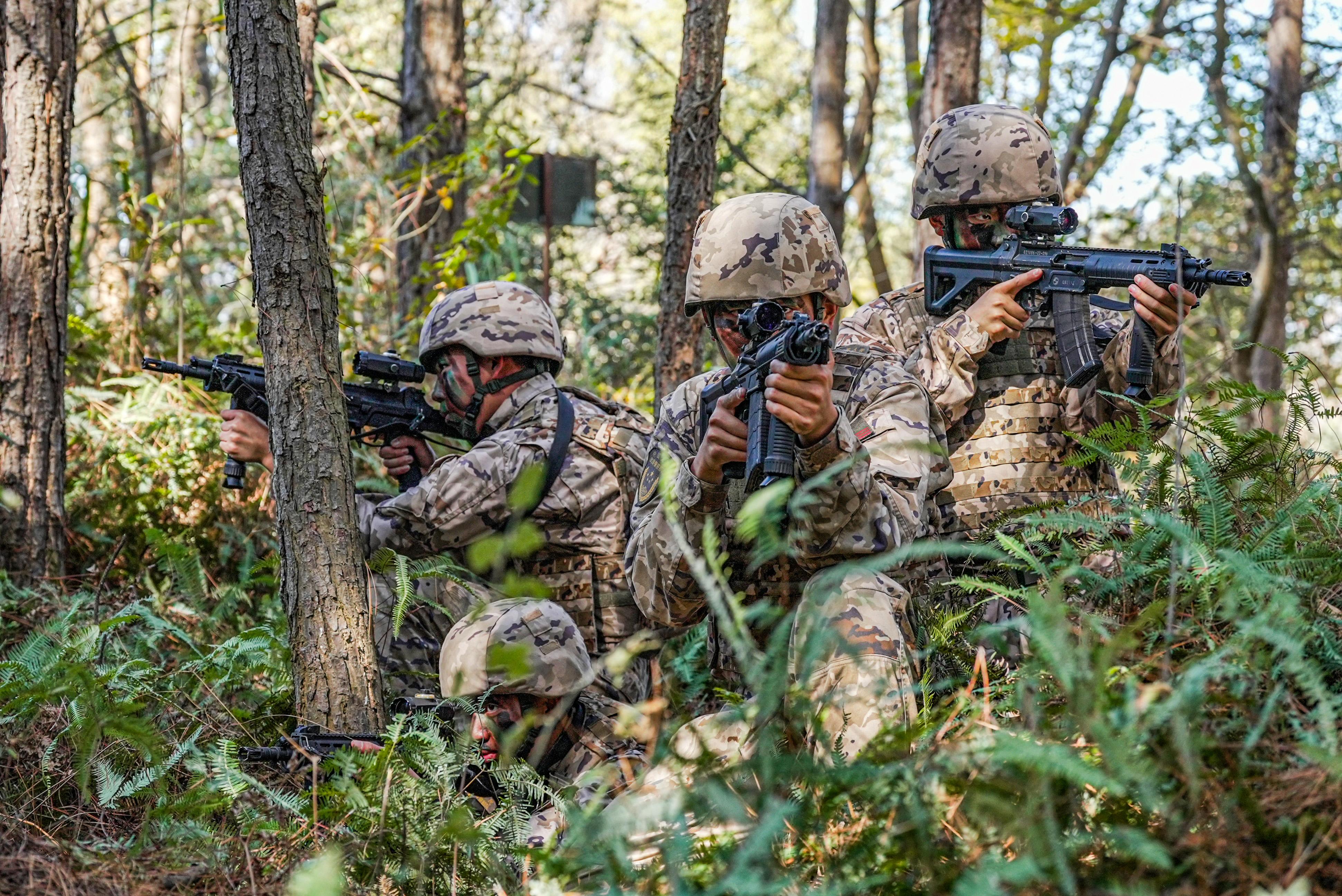 近日,武警福建总队某支队组织官兵在野外陌生地域开展实战化训练,重点围绕侦察、搜索、班组战术协同等课目进行专攻精训,让官兵在复杂环境下改进完善战术战法,不断磨炼官兵战斗意志,为遂行多样化任务打下坚实基础。