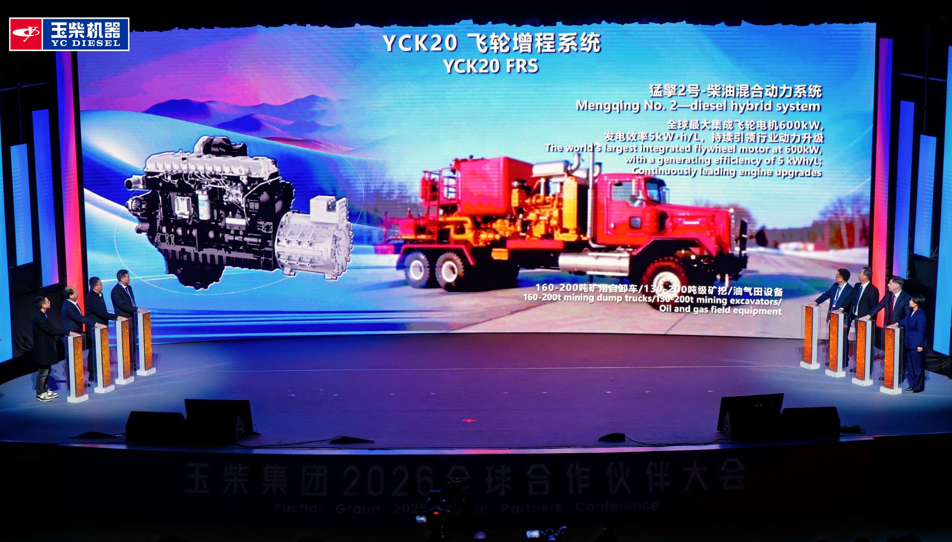 大会现场,玉柴集团推出一系列重磅科技成果,向世界展示了其强大的创新基因和技术领导力。玉柴正式面向全球发布其划时代的“玉柴飞轮增程系统(FRS)”。该技术全球首创飞轮增程,具备全场景覆盖、超高效率等核心优势,可广泛应用于装载机、矿用车、挖掘机、钻机、叉车、收获机械、中短途重卡、中长途重卡、公交车等9大核心领域,已被验证为商用领域技术实力最强、应用最广的增程解决方案,这标志着玉柴在新能源技术路径上取得了里程碑式突破。