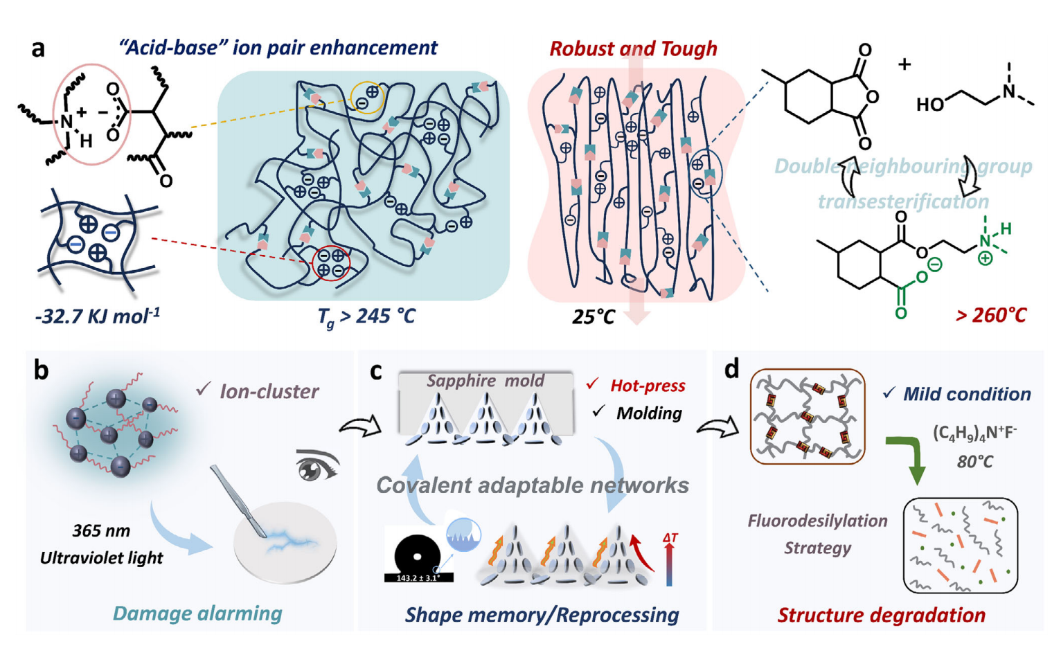 汪怀远教授团队从分子设计源头入手,在传统环氧树脂的刚性网络中巧妙地植入了可逆的“酸碱离子对”。这些离子对在材料中扮演着双重角色,既是吸收冲击能量的“微型减震器”,又是能在高温下启动键位重组的“智能催化剂”。这种设计使新材料在保持超高强度(78兆帕)和耐热性(玻璃化转变温度大于245摄氏度)的同时,断裂韧性达到了8.2兆焦耳每立方米。相比市售高端环氧树脂材料,新材料的耐热性提高了约15%,而断裂韧性则提升了近3倍。在保持这些优异性能的同时,新材料还具备了传统环氧树脂所缺乏的自修复能力和可回收性。
