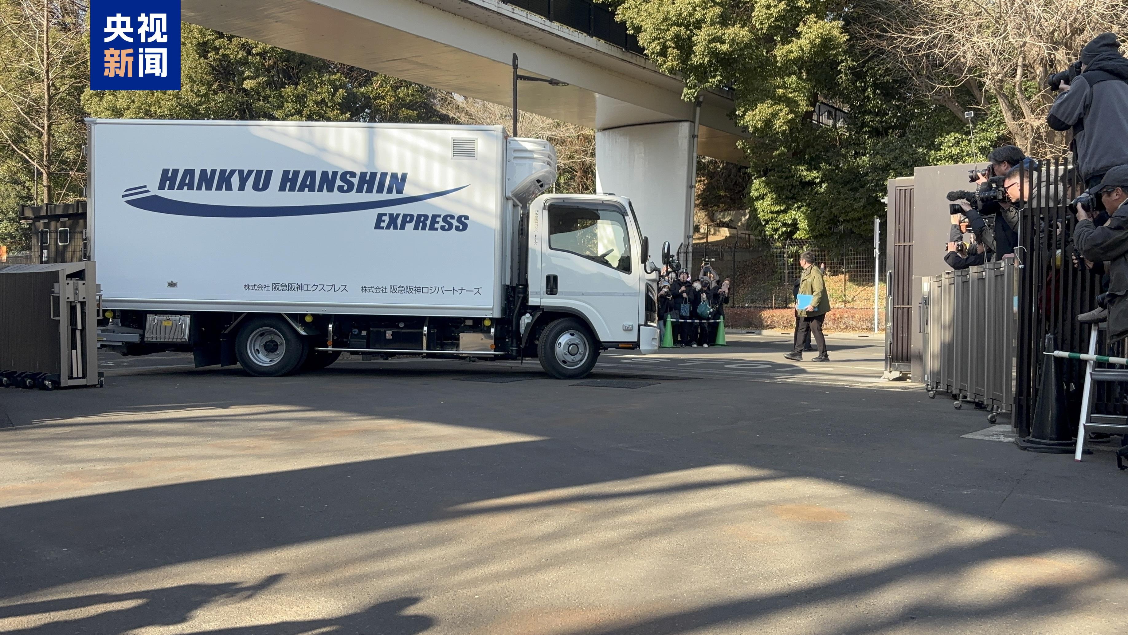 当地时间1月27日,装载旅日大熊猫“晓晓”和“蕾蕾”的卡车从东京上野动物园出发前往机场,启程返回中国。