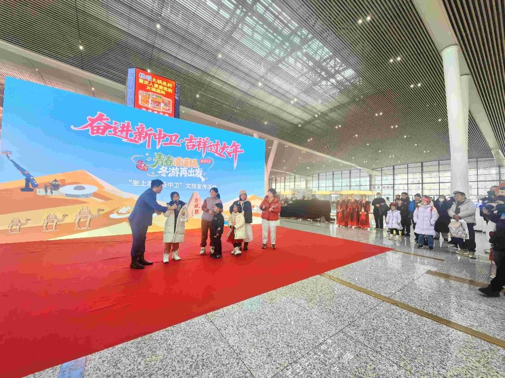 活动现场,花儿联唱与方言趣味互动交融,将中卫特色文化融入庆典。列车启程后,这张“流动的中卫名片”沿包银高铁,向旅客传递中卫冬季魅力,车厢内持续的文旅推介,让旅途成为中卫文旅展示窗口,让旅客沉浸式感受“星星的故乡”韵味与“青春漠漠搭”活力。