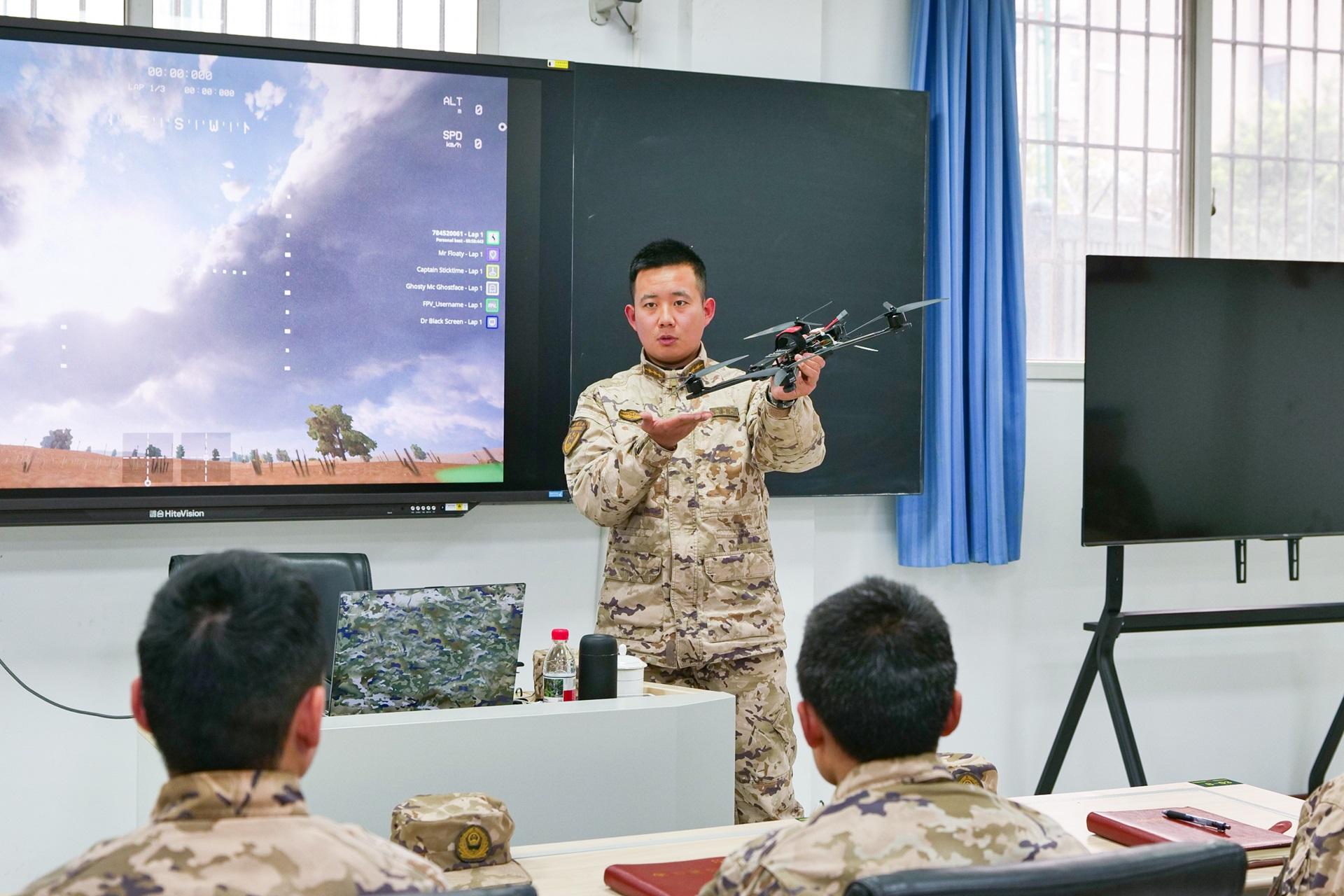 “在这里练习不用担心摔机和迷航,还能反复锤炼复杂环境下的处置能力,效果立竿见影。”机动中队排长何申龙介绍,专修室集理论学习、模拟飞行、拆装维修、战法研讨于一体,为操作手提供了从入门到精通的全流程、全链路训练条件。集训中,他们紧盯短板弱项,通过设置无人机飞行原理、通信链路、侦察监测、目标识别等理论课程,重点针对夜间侦察、狭窄空间飞行、察打一体协同等高难课目,进行“过关升级”式专攻精练,为实战应用打下坚实基础。