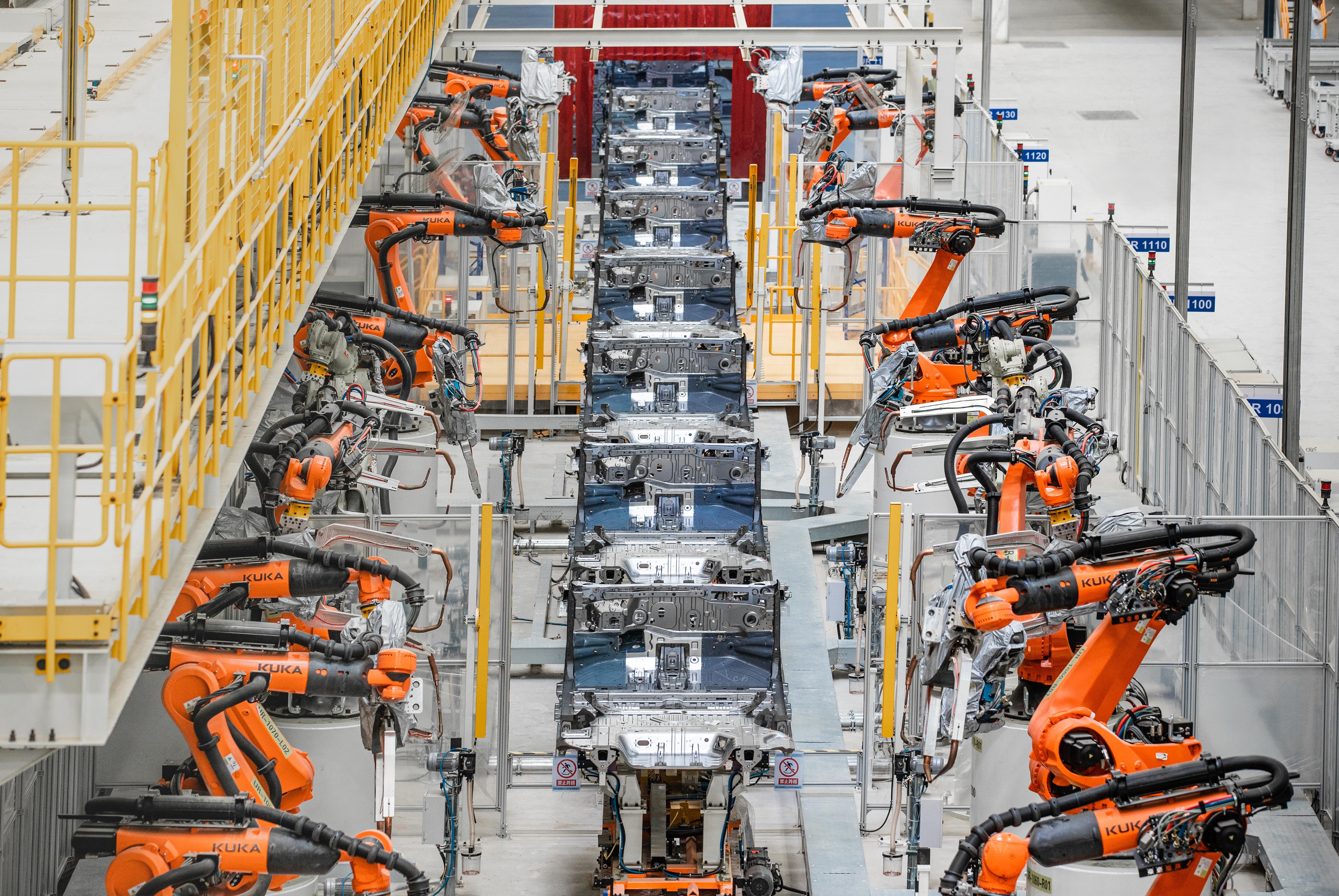 冬日的比亚迪郑州汽车工厂,车间里热火朝天。流水线上,机械臂精准地焊接、组装,每隔一分钟就有一台新能源汽车下线。