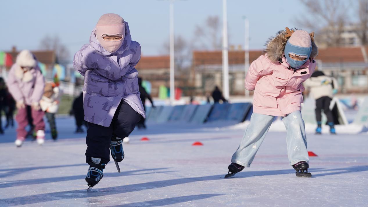 在海林市体育场免费开放的公益冰场上,少年儿童踏冰嬉戏,成年市民舒展滑行。自1978年起,当地每年11月末至次年2月中旬如期浇筑冰场并免费开放,47年的坚持让“在家门口上冰”成为海林人的共同记忆。