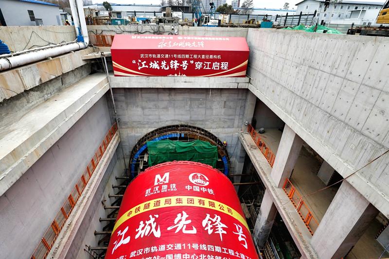 1月29日,随着国产直径12.56米的“江城先锋号”盾构机刀盘缓缓启动,武汉地铁11号线四期工程关键段——江国路站至国博中心北站区间(以下简称“江国区间”),4.26公里的越江隧道正式进入盾构掘进阶段。