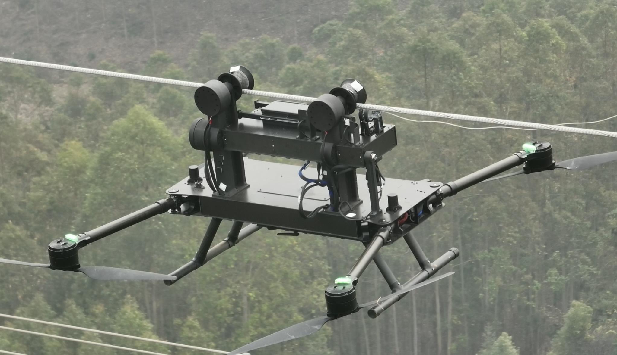 南方电网广西电网电力科学研究院创新管理部经理卓浩泽介绍,该装置有三大核心技术。一是“飞行+爬线”的融合设计,实现了机器人的自主上线、下线以及行走。二是多模态智能算法,使机器人能自主适应不同直径、不同坡度、各种工况的光缆。三是智能上下线技术,实现了对光缆的精准识别与自主对接。