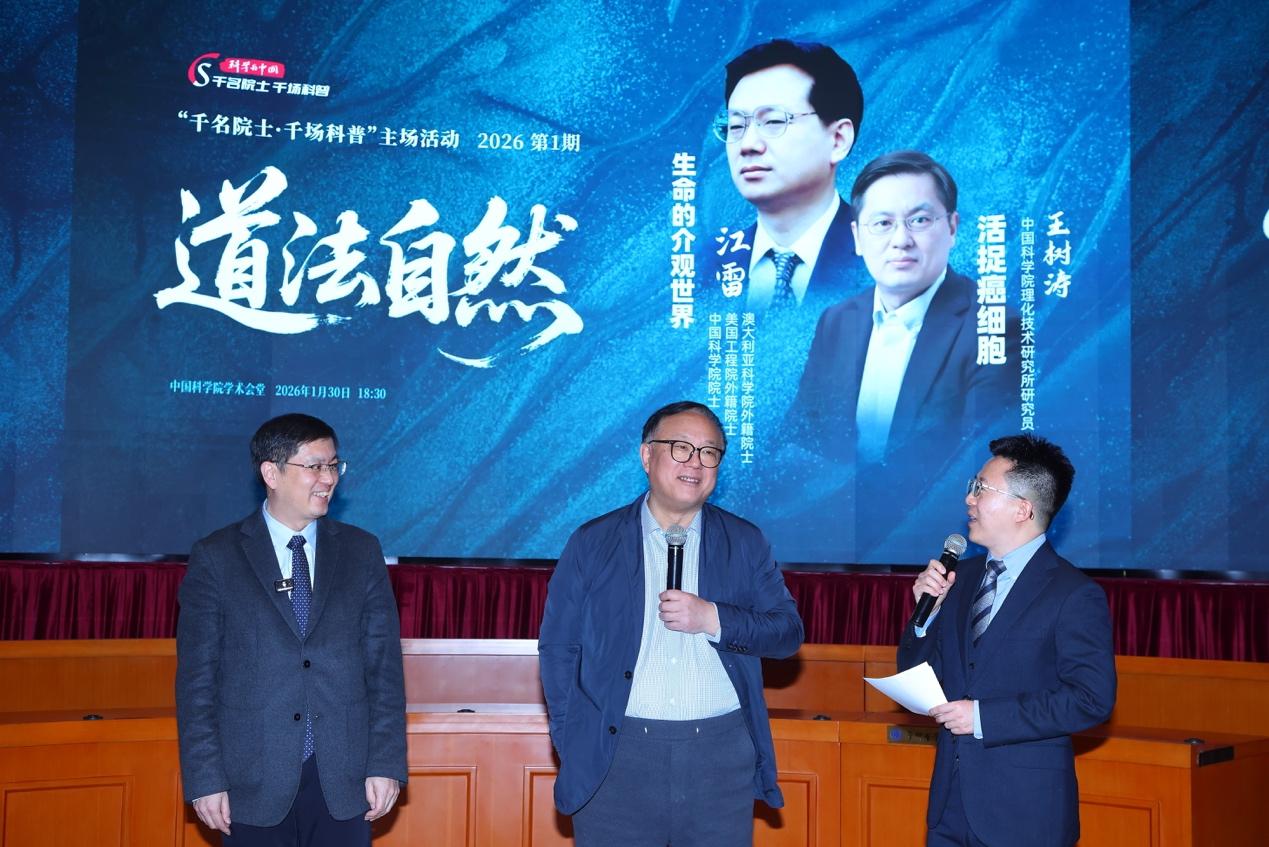 1月30日,“科学与中国——千名院士·千场科普”2026年首场主场活动在北京举行。活动以“道法自然”为主题,聚焦仿生界面材料领域的前沿创新成果,以故事化、探究式表达,将高深科技知识转化为易懂的科普内容,让公众近距离感受科技魅力。