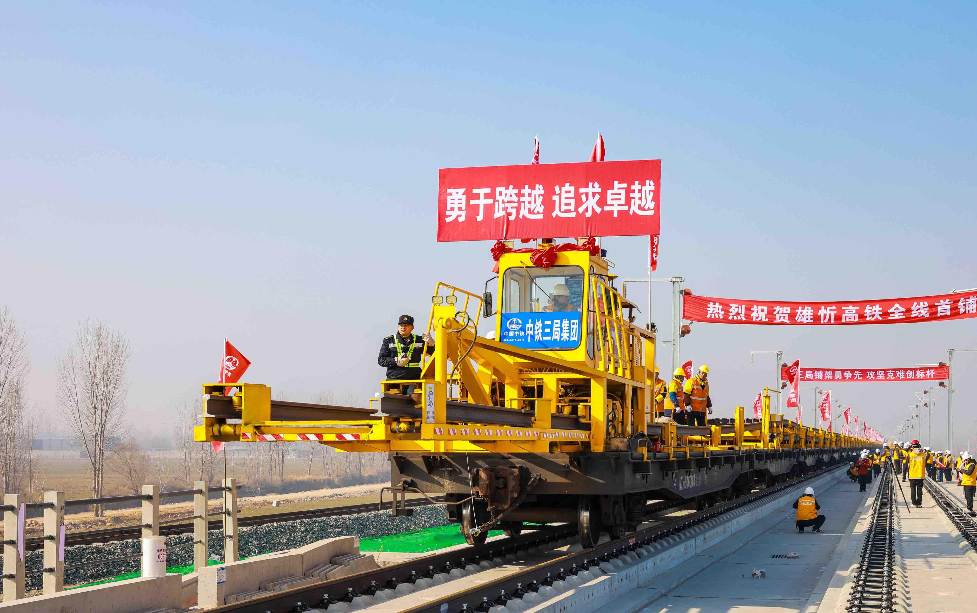 雄忻高铁是我国“八纵八横”高速铁路网京昆通道的重要组成部分,线路东起雄安站,终至忻州西站,正线全长约342公里,设计时速350公里。雄忻高铁铺轨施工横跨河北、山西两省,铺轨施工全长716公里,需铺设道岔147组。按照施工计划,自2月1日起,首先启动雄忻高铁河北段铺轨作业,后续再开展山西段等铺轨施工。