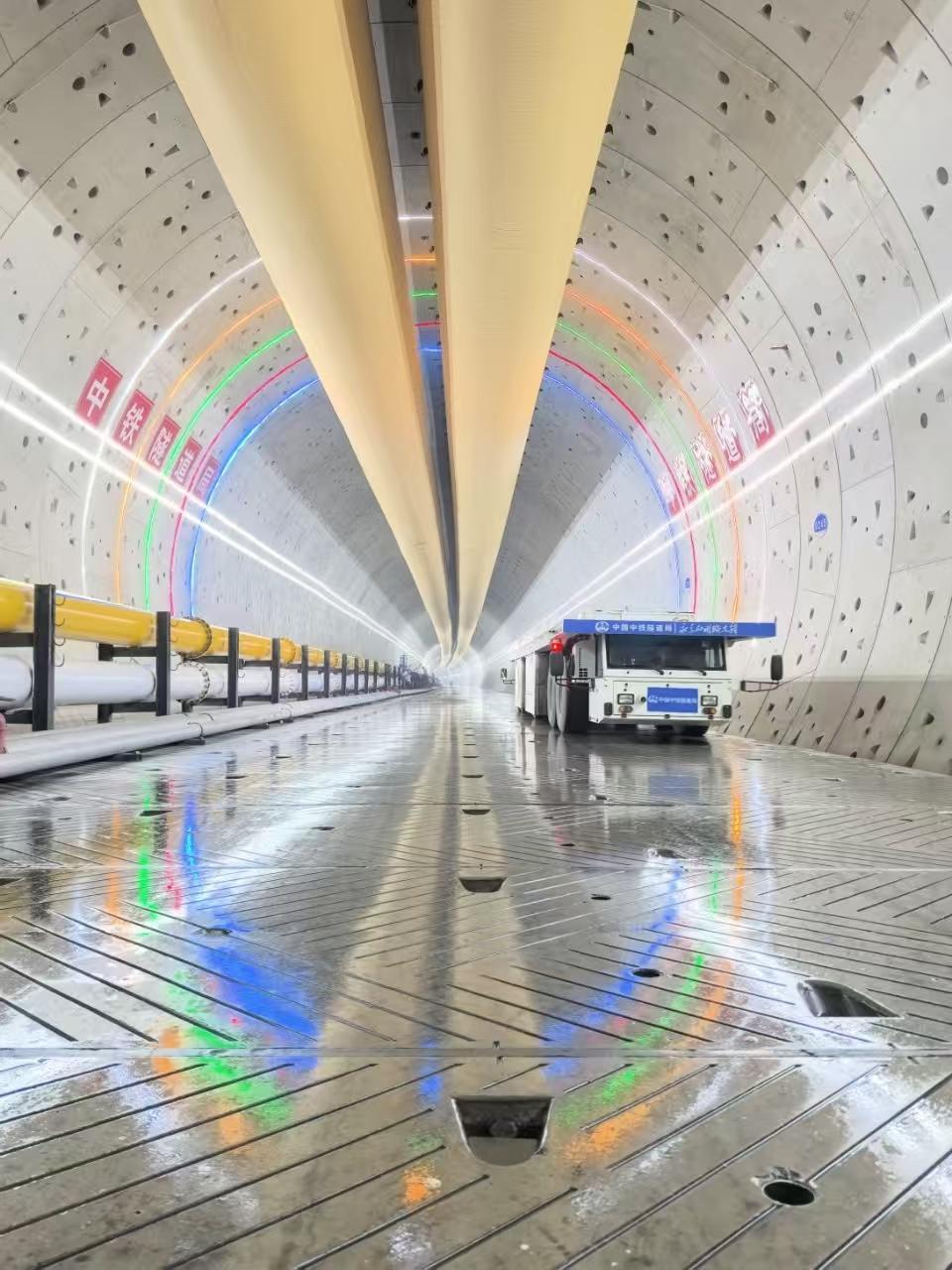 “面对水下0.9兆帕的极高静水压力和全线最复杂地质区间,我们制定‘材料、结构、智能’三位一体多层级应对方案。”李斌手指着隧道内智能拼装好的一环环管片告诉记者,项目团队首创高稳定性注浆材料,就像为管片披上“定沉铠甲”,在外围形成保护层;增设第六道盾尾密封系统,构建起“固若金汤”的超级防水屏障,确保隧道在动态水压下也能“稳如磐石”。