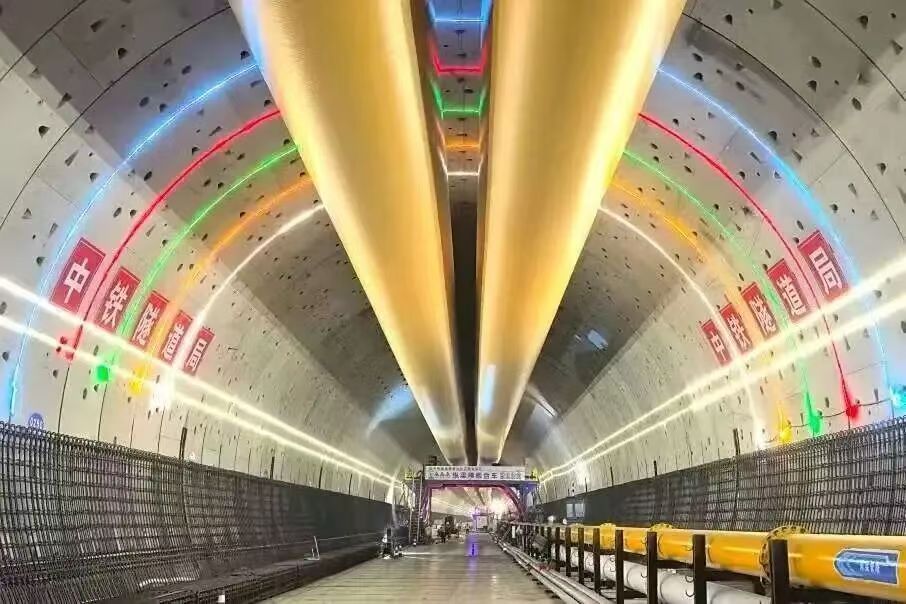 深入水下89米,一条“彩虹大道”铺设在眼前。这里,是我国目前建设标准最高、掘进距离最长、规模最大的高铁越江隧道——沪渝蓉沿江高铁崇太长江隧道。