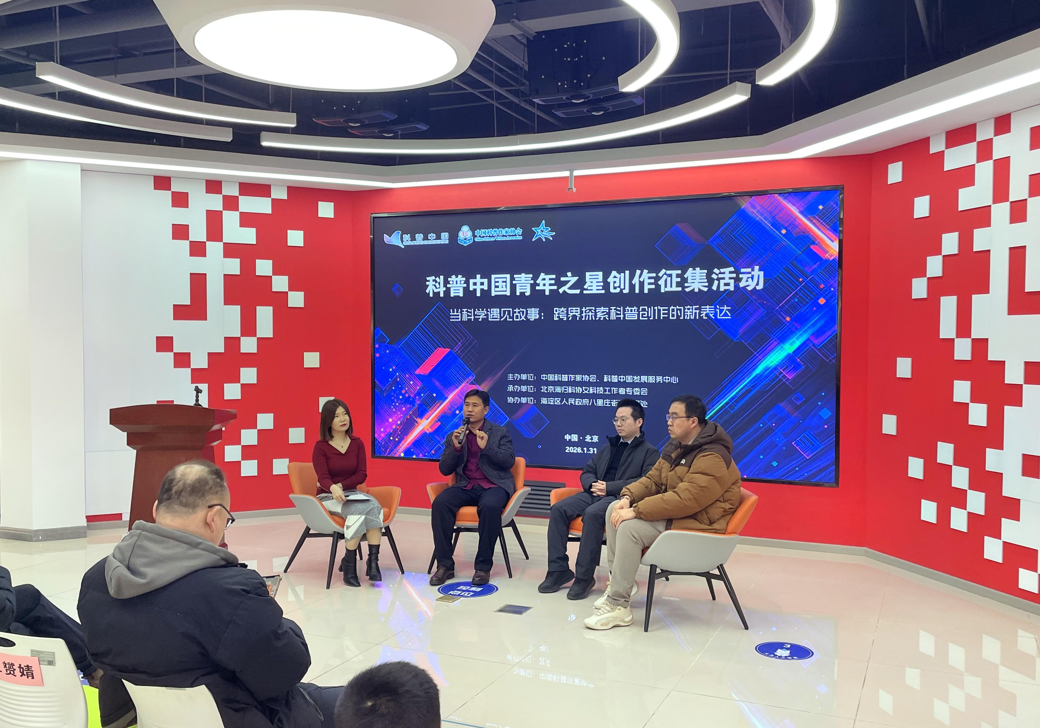 1月31日,“当科学遇见故事:跨界探索科普创作的新表达”主题对话在北京八里庄慧美党群服务中心举行。活动由中国科普作家协会、科普中国发展服务中心主办,系“科普中国青年之星创作征集活动”系列活动之一。