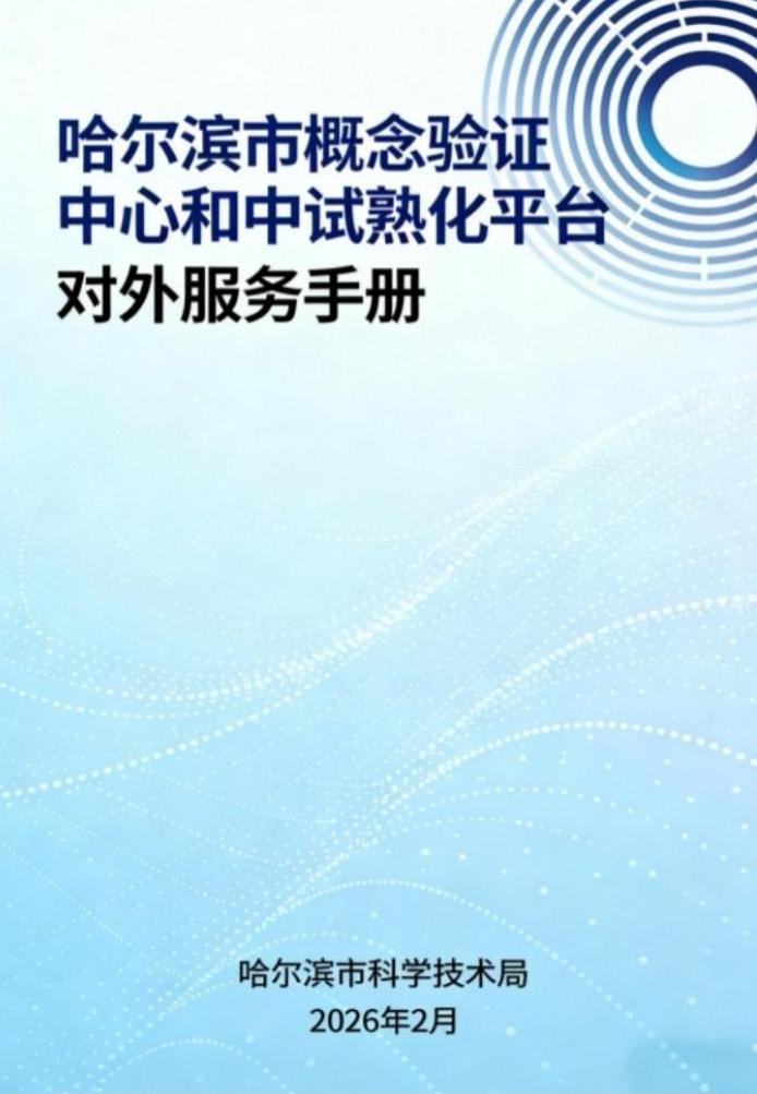 日前,哈尔滨市科学技术局发布了《哈尔滨市概念验证中心和中试熟化平台对外服务手册》。手册共汇集对外开放的概念验证中心22个、中试熟化平台26个,涵盖服务内容170个,其服务范围覆盖高端装备、生物医药、新材料、低碳能源、食品、航空航天、电子信息制造等重点产业技术领域。