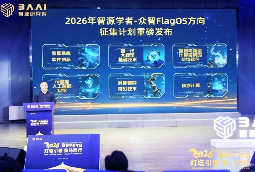 2月3日,2026智源学者年会在北京中关村举办,百余位人工智能领域专家学者、产业界领军人共聚盛会。现场,智源研究院揭晓2025年度智源学者入选名单,并以此开启“智源学者3.0”阶段,同时发布了2026智源学者-众智FlagOS方向的征集。