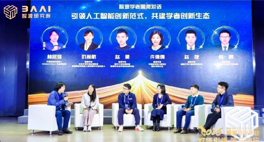 会上,中国科学院院士、清华大学生命科学学院院长、智源学者时松海作主旨演讲,多位青年学者发布前沿成果。两场圆桌对话分别聚焦创新生态构建与AI成果转化,探讨跨机构协作及技术落地路径。黄铁军在总结中提出,学者要开拓技术新边界,助力智能文明进步。
