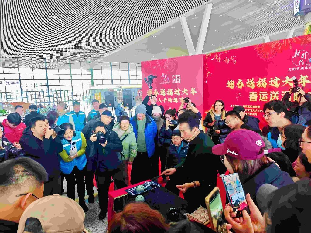 2月4日立春日,“迎春送福过大年 百人千场进万站”春运送温暖文明实践活动在北京海淀清河站候车大厅启动。活动由海淀区委宣传部等多单位联合举办,将节气文化、新春民俗与春运服务相结合,为旅客送上温馨关怀。