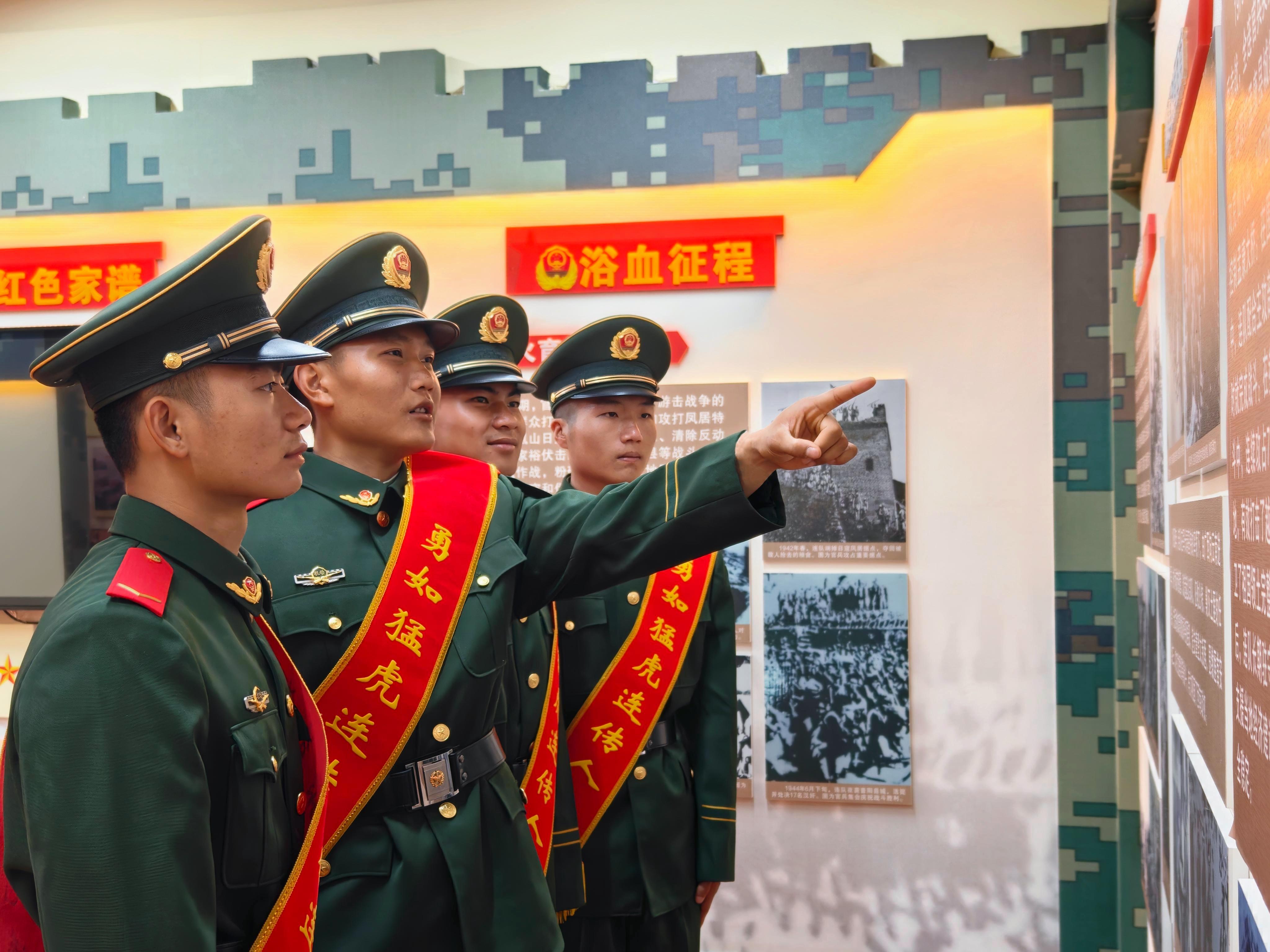 红色血脉接续传承,忠诚底色历经沉淀愈发厚重。仪式结束后,新兵们在中队红色讲解员的引导下参观荣誉室,激发大家强烈共鸣。相信在“猛虎精神”的激励下,这些新兵将在军旅人生中写下浓墨重彩的一笔!