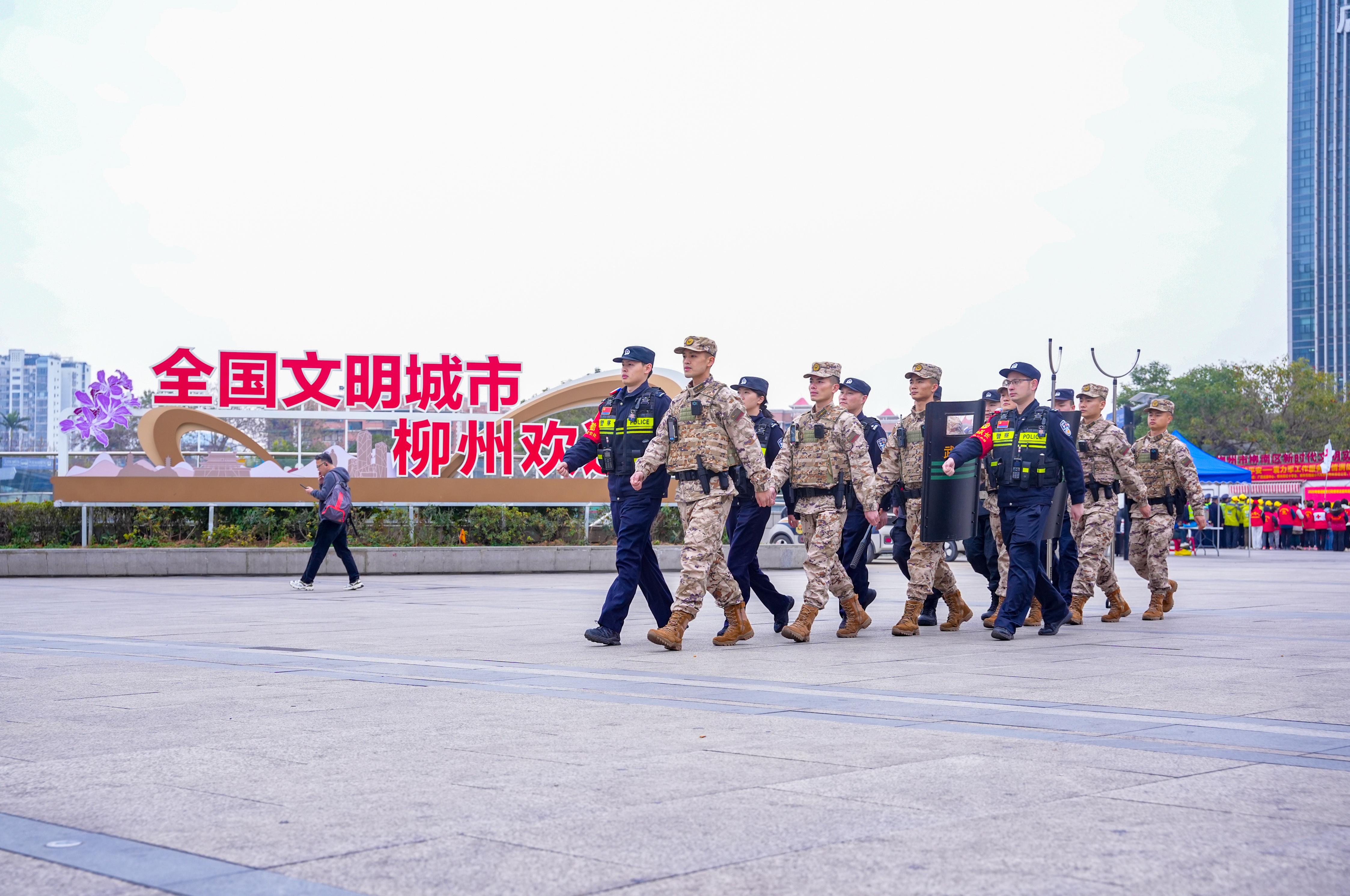 春运首日,广西柳州城区迎来首批返乡客流高峰。为筑牢驻地安全防线、保障旅客平安出行,武警广西总队柳州支队与驻地公安部门紧密协同、联勤联动,采取定点警戒、徒步巡逻相结合的方式开展联勤武装巡逻。