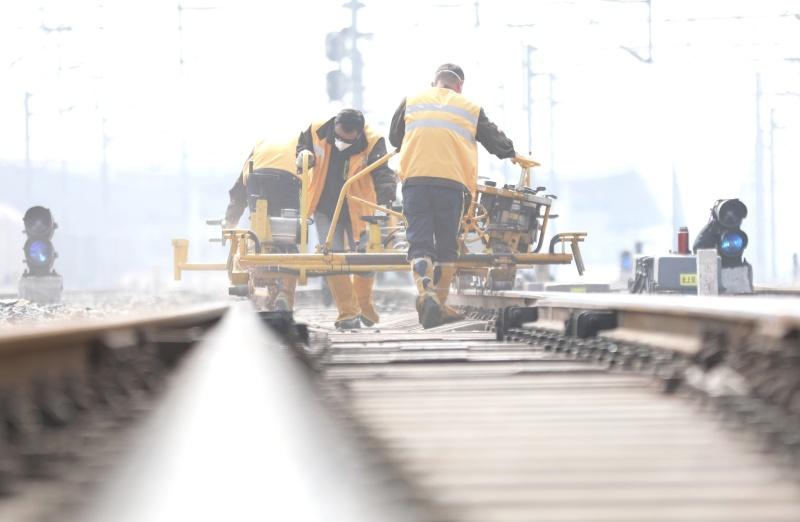 2月4日,中国铁路武汉局集团公司麻城工务段打磨专班8名职工,利用3D技术打磨京九线麻城站道岔,飞溅的钢花与电脑屏幕上流转的数据,共同编织成一幅科技护航春运的生动图景。