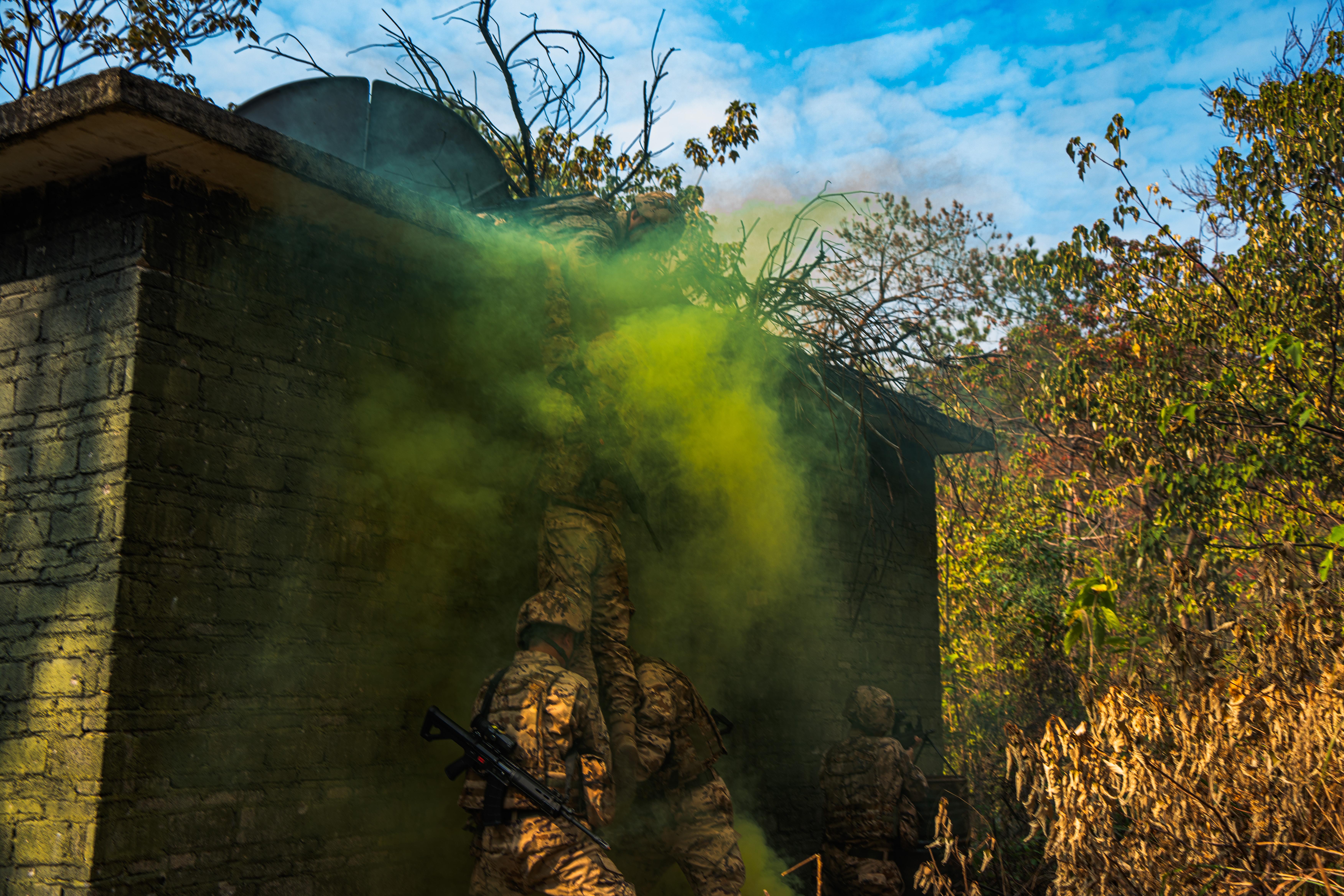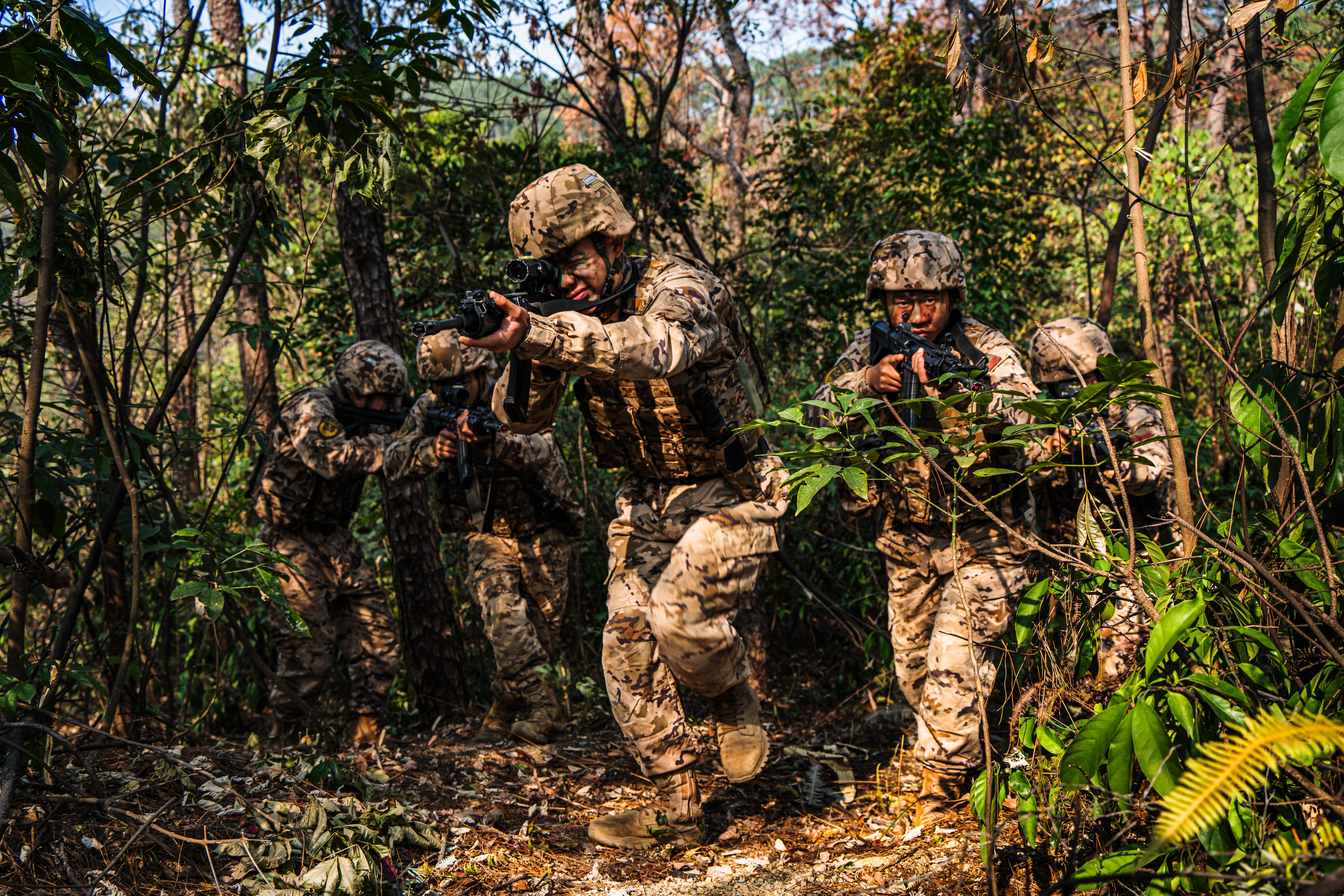 近日,武警第二机动总队某支队组织机动分队在山地丛林展开实战化训练。官兵们穿梭于密林陡坡之间,依托复杂地形开展战术协同、隐蔽接近、区域封锁和精准突击等课目演练。训练全程突出实战背景,有效锤炼了分队在陌生环境下的快速机动、战场感知和应急处置能力,全面提升官兵在复杂条件下遂行多样化任务的作战素养。