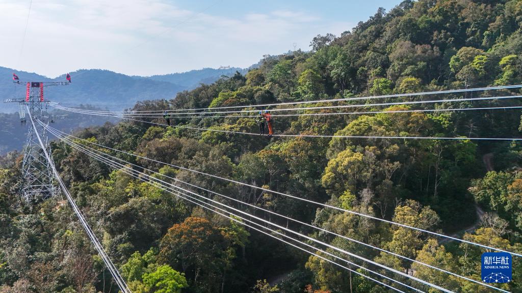 记者从南方电网公司获悉,2月5日,随着输电导线在中国云南省磨憨与老挝磨丁交界处顺利完成高空连接,中老500千伏联网工程中国段与老挝段实现物理连通。这次“云端握手”,标志着这一工程国内外线路全线贯通。